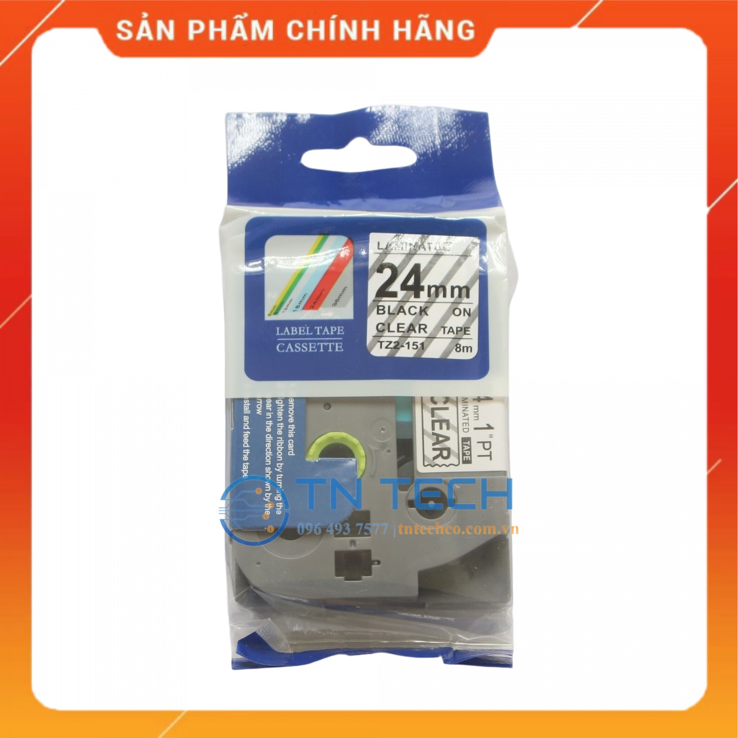 Nhãn in TZ2-151 Brother Nhãn in đa lớp sử dụng cho máy in nhãn Brother, tất cả trong 1, mực nằm bên trong, chống chịu dung môi, hóa chất, nước, dầu mỡ, nhiệt độ Mã