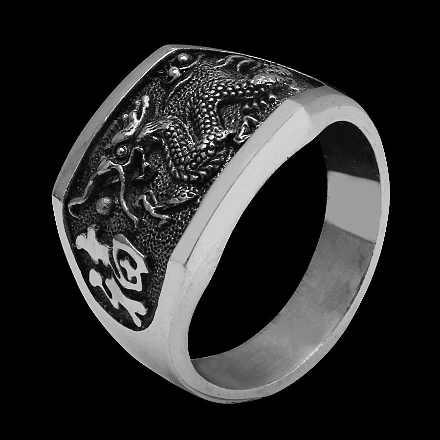 Nhẫn Nam đính hạt chạm khắc Rồng - T0242 Chất kiệu: hợp kim bạc Có nhiều size từ 6 đến 13 Quí khách xem bảng size và hướng dẫn đo size trên ảnh nhé Mẫu