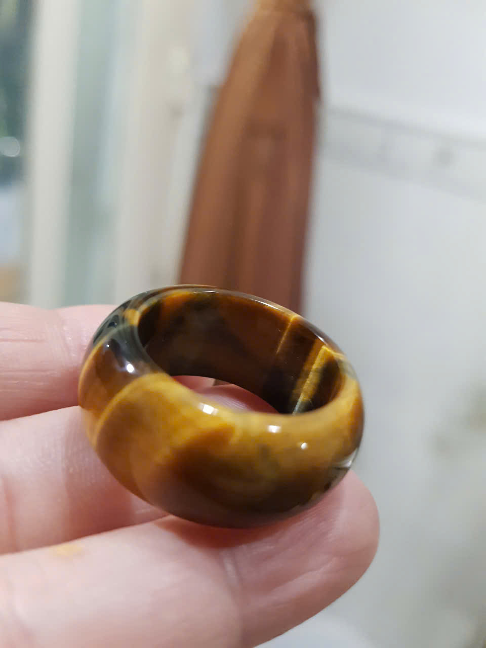 ✨Nhẫn Nam Đá Mắt Hổ Vàng Nâu Tiger Eyes Tự Nhiên đậm bóng đẹp mới ni 20mm x Cao 12mm / 11mm dầy 4mm nam mệnh Kim mệnh Thổ mệnh Thủy đeo ni 20mm rẻ đẹp ạ