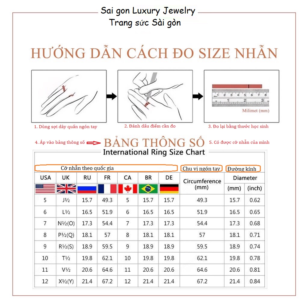 Size nhẫn: chỉ 1 size 11 – hệ USA(vui lòng đo kĩ size nhẫn theo bảng hướng dẫn của shop)