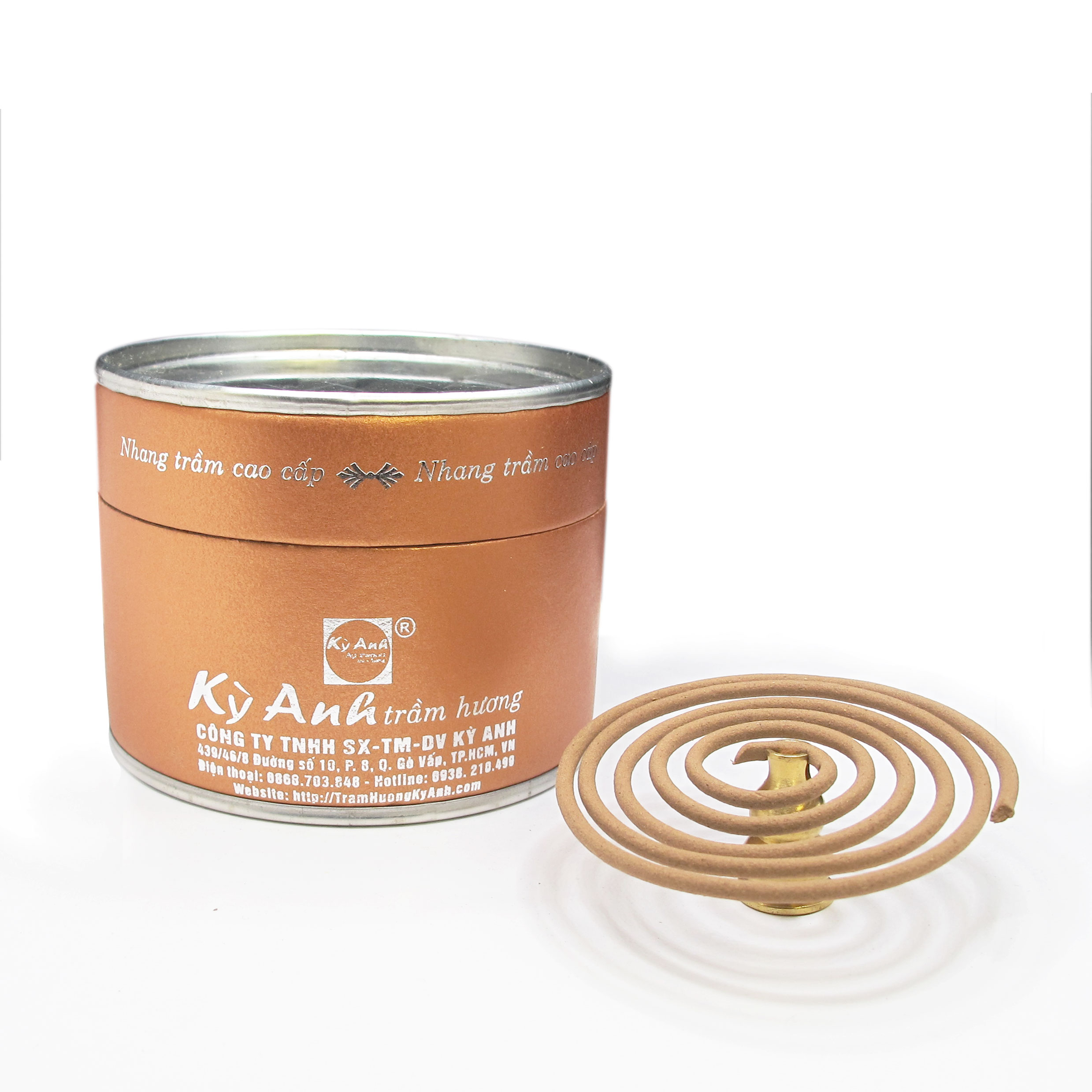 Giới thiệu nhang vòng trầm hương Nhang vòng trầm hương được làm từ bột trầm hương nguyên chất kết hợp với keo bời lời tự nhiên. Sau đó được nén thành hình vòng xoắn ốc,