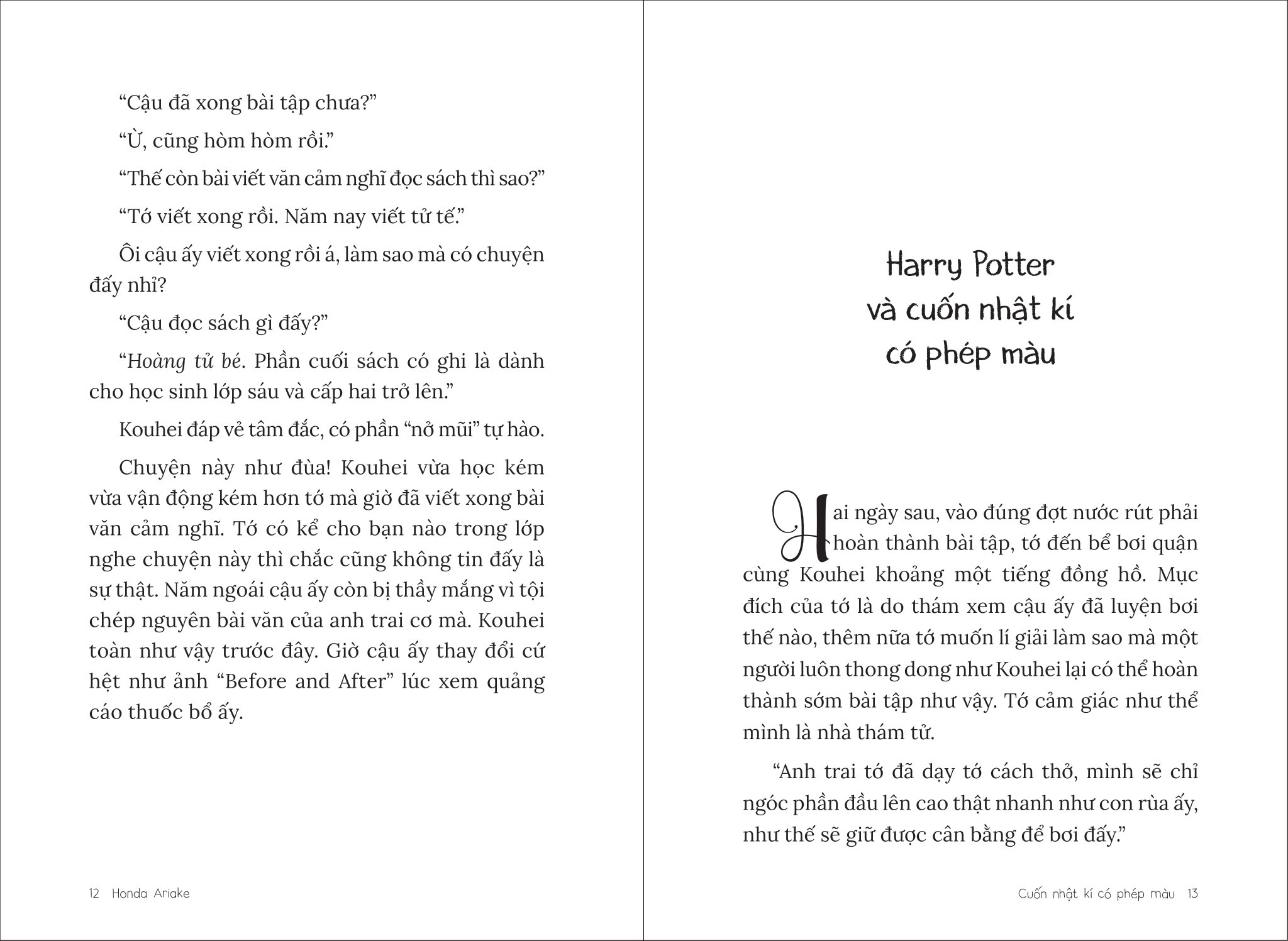Truyện kể này chỉ cần đọc từng cuốn riêng biệt cũng đã có thể hiểu được nhưng có thể nói đây là phần tiếp theo của cuốn “Nhật kí thực hiện ước mơ.” Đó là truyện kể về cậu bạn thân của Ryuya là Inoue Kouhei đã biến hóa trưởng thành thế nào nhờ viết nhật kí. Vì muốn biết lí do mà cậu bé Ryuya đã làm cách này cách kia để tự mình giải đáp được thắc mắc ấy. Qua đây, các bạn cũng đã hiểu rằng, đó chính là nguồn gốc ra đời của “Cuốn nhật kí có phép màu” này phải không nào?