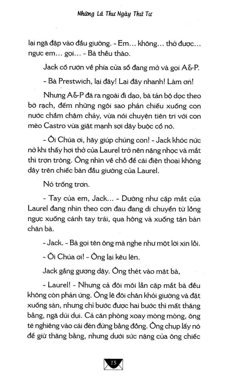 "Em có tin là chúng ta đã cưới nhau không? Phải, chúng ta đã cưới nhau rồi em ạ! Thật là một ngày tuyệt vời! Giờ đã là 11 giờ 50 phút và em đang ngủ say sưa ở góc phòng. Theo em thì thiên thần có ngáy khi ngủ không? Thực sự là có đấy, ít nhất thiên thần ấy là em. Đó là điều buồn cười nhất mà anh vừa khám phá ra. Ai mà biết phụ nữ cũng ngáy cơ chứ? Chắc em ghét anh lắm vì đã viết ra tật xấu này nhưng giờ thì em có thể làm được gì anh chứ? Chúng ta cưới nhau rồi!