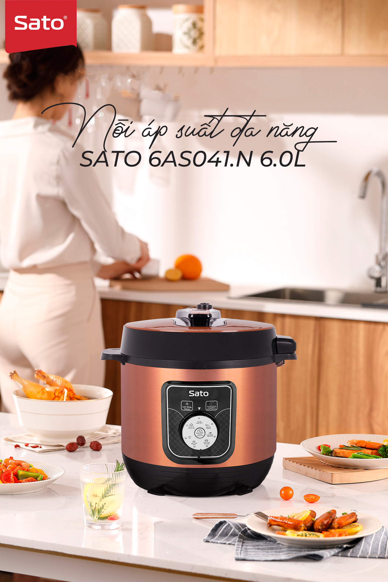 Nồi áp suất đa chức năng : nấu cơm, nấu cháo, hầm gân, ninh, súp, hấp, giữ ấm