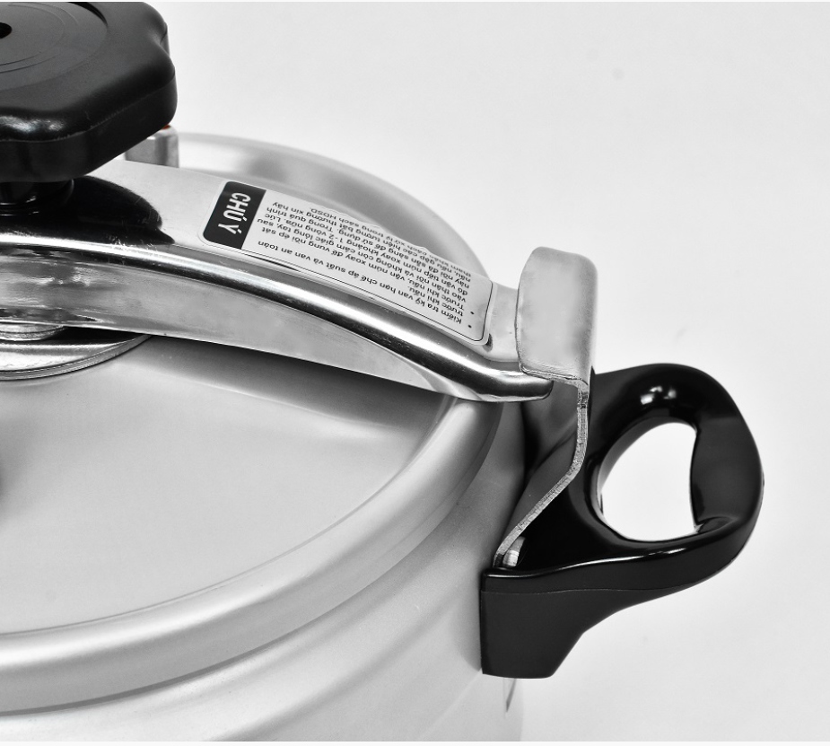 Nồi áp suất đáy từ Goldsun GPC1930-05IH có 2 bên tay cầm làm bằng nhựa chịu nhiệt, cách nhiệt tốt, thiết kế to bản rất dễ nâng nhấc. Ngoài ra, sản phẩm còn có khóa đóng mở nắp được thiết kế dạng xoay, thao tác đóng mở nắp rất dễ dàng. Van an toàn, tự động xả áp khi áp suất trong nồi vượt quá mức cho phép, không chỉ đảm bảo an toàn mà còn rất tiện lợi.