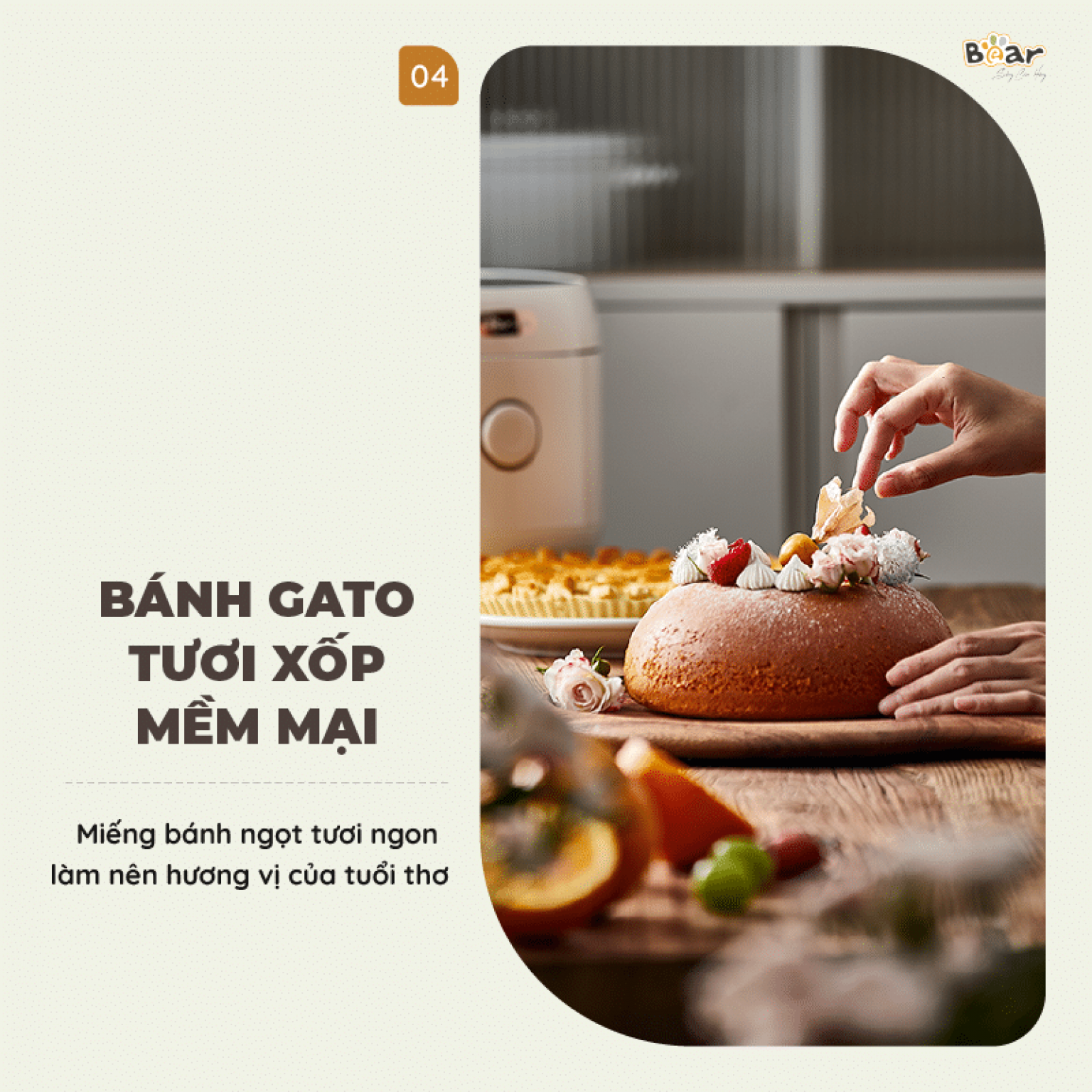 - Hướng dẫn sử dụng nồi cơm điện Bear 3L SB-NC30B Bạn cần nắm được các bước thao tác thực hiện của nồi cơm điện Bear, để quá trình chế biến món ăn trở nên đơn giản hơn bao giờ hết. Dưới đây là những bước hướng dẫn sử dụng chi tiết nhất của các chế độ nấu trên nồi cơm điện Bear. 3.1. Nấu nhanh Lấy một lượng gạo thích hợp bằng cốc đong, rửa sạch, thêm một lượng nước thích hợp với từng loại gạo, chọn chức năng “ Nấu nhanh” và nhấn nút khởi động để bắt đầu công việc. Sau khi công việc hoàn thành, chuông báo sẽ ngưng trong 1 giây (0,3 giây cho mỗi âm thanh) ba lần, sau đó tự động chuyển sang chế độ giữ nhiệt. 3.2. Nấu súp Nhấn phím “Chức năng” để chọn chức năng “Nấu súp”. Thời gian mặc định là 2 giờ. Nhấn phím “+” hoặc “-” để thiết lập thời gian nấu. Điều chỉnh thời gian là 1 – 4 giờ. Nhấn nút “Bắt đầu” để bắt đầu sản phẩm. Sau khi công việc hoàn thành, chuông “kêu” ba lần và ngưng trong 1 giây (0,3 giây cho mỗi âm thanh), và chương trình tự động chuyển sang chế độ giữ ấm. Nếu không cần giữ ấm, nhấn nút “Bắt đầu/Hủy” để hủy công việc. 3.3. Nấu cơm Lấy một lượng gạo thích bằng cốc đong, rửa sạch, thêm một lượng nước thích hợp với từng loại gạo, chọn chức năng “Nấu cơm” và nhấn nút khởi động để bắt đầu công việc, sau khi công việc hoàn thành, chuông sẽ “kêu” ba lần và ngưng trong 1 giây (0,3 giây cho mỗi âm thanh), sau đó tự động chuyển sang chế độ giữ nhiệt. 3.4. Nấu cháo Lấy một lượng gạo thích hợp từ cốc đong. Sau khi rửa sạch, cho lượng nước phù hợp theo lượng gạo. Nhấn phím “Chức năng” để chọn chức năng “Nấu cháo”. Thời gian mặc định là 1:30 giờ. Nhấn phím “+” hoặc “-” để thiết lập thời gian nấu. Điều chỉnh thời gian là 1-4 giờ. Nhấn nút “Bắt đầu” để bắt đầu nấu. Sau khi quá trình hoàn tất, chuông báo “bíp” ba lần và dừng trong 1 giây (0,3 giây cho mỗi tiếng bíp), và chương trình tự động chuyển sang chế độ giữ nhiệt. Nếu không cần giữ nhiệt, nhấn nút “Bắt đầu/Hủy” để hủy quá trình. 3.5. Món tráng miệng Cho thực phẩm tương ứng vào nồi, nhấn phím “Chức năng” để chọn chức năng “Đồ ngọt”, thời gian mặc định là 2 giờ, nhấn phím “+” hoặc “-” để thiết lập thời gian nấu, điều chỉnh thời gian là 1-4 giờ, nhấn phím “Bắt đầu” để sản phẩm bắt đầu hoạt động. Sau khi hoàn thành, chuông cảnh báo “kêu” ba lần và dừng trong 1 giây (0,3 giây cho mỗi tiếng kêu), chương trình tự động vào chế độ giữ nhiệt. Nếu không cần giữ nhiệt, nhấn phím “Bắt đầu/Hủy bỏ” để huỷ bỏ công việc. 3.6. Làm bánh Chuẩn bị nguyên liệu: 100g đường, 100g bột bánh, 3 quả trứng. Sau khi nhào bột xong, bạn hãy quét một lớp bơ dưới đáy nồi để nhấc bánh ra dễ hơn. Sau đó cho phần bột đã nhồi đó vào lòng nồi cơm điện. Nhấn chọn chế độ làm bánh, tùy chỉnh thời gian và nhiệt độ sao cho phù hợp với loại bánh bạn đang làm. Nhấn phím “Bắt đầu” để nồi cơm bắt đầu hoạt động. Sau khi hoàn thành quá trình làm bánh, nồi sẽ tự động phát ra chuông cảnh báo kêu 3 lần.