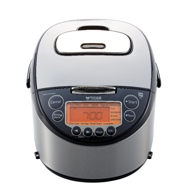 Nồi cơm điện tử cao tần Tiger JKT-D10V với thiết kế bảng điều khiển màn hình LCD điều chỉnh nút nhấn Menu thông minh “lùi và tới” mà không cần nhấn theo thứ tự tuần hoàn, hiện đại, đơn giản và dễ dàng sử dụng với 12 chức năng : 11 chức năng nấu cơm (Nấu gạo trắng, Nấu cơm cực ngon, Nấu cơm nhanh, Nấu tiết kiệm điện, Nấu gạo trộn ngũ cốc, Nấu gạo lức, Nấu gạo lức nảy mầm, Nấu cháo, Nấu gạo nếp – Nấu cơm trộn, Nấu gạo hạt dài), Nấu cơm siêu tốc (Express-Limited Cups), hầm và giữ ấm đáp ứng những bữa cơm đa dạng cho gia đình bạn. Không chỉ vậy, chế độ giữ ấm cơm tự động lên đến 24 giờ mà không bị khô rất tiện lợi và tiết kiệm chi phí cho người nội trợ không có nhiều thời gian nấu cơm.
