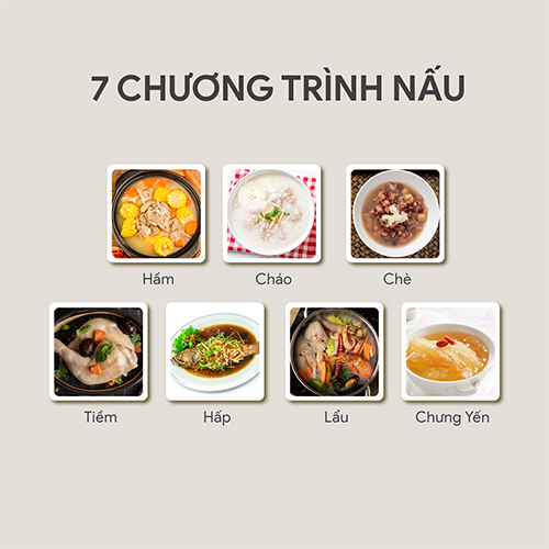 ĐẶC ĐIỂM NỔI BẬT -6 chế độ thiết lập sẵn đa dạng: Hấp, Hầm thịt, Nấu lẩu, Nấu xào, Hầm, Giữ ấm -2 chế độ tinh chỉnh không giới hạn: Hẹn giờ và các mức