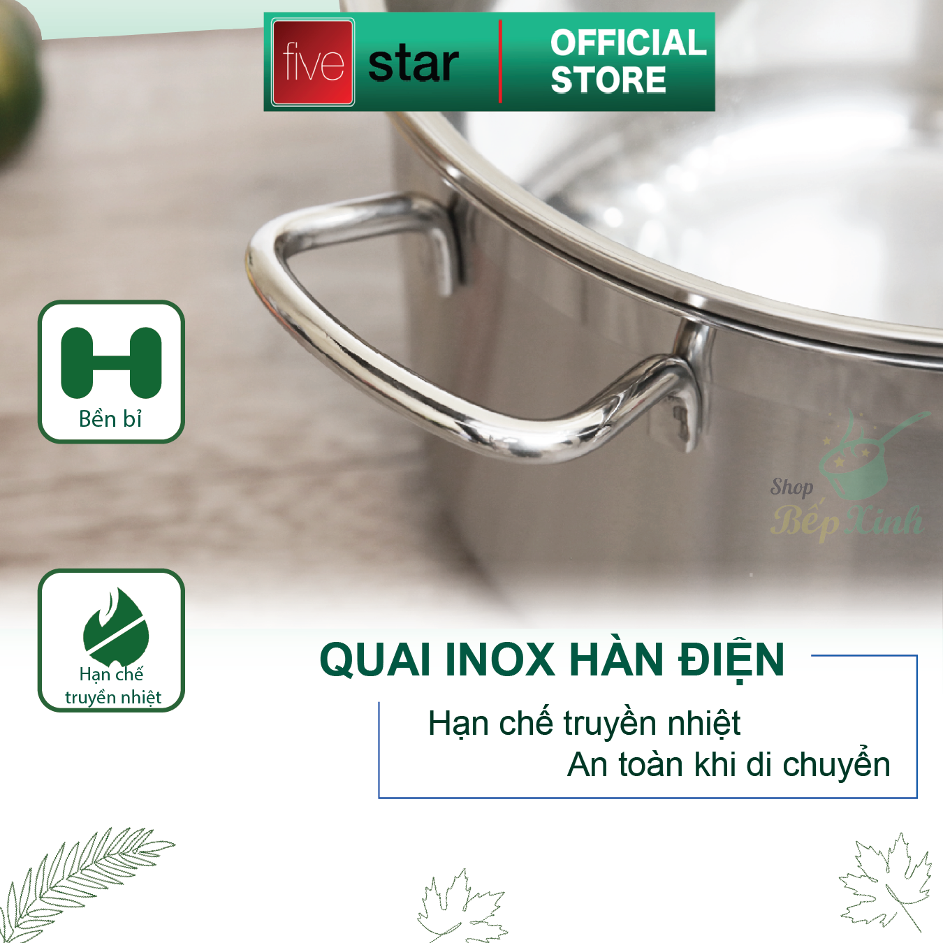 Nồi Inox 304 chống dính 3 đáy Fivestar 20cm dùng bếp từ, chính hãng bảo hành 60 tháng #sanhangre