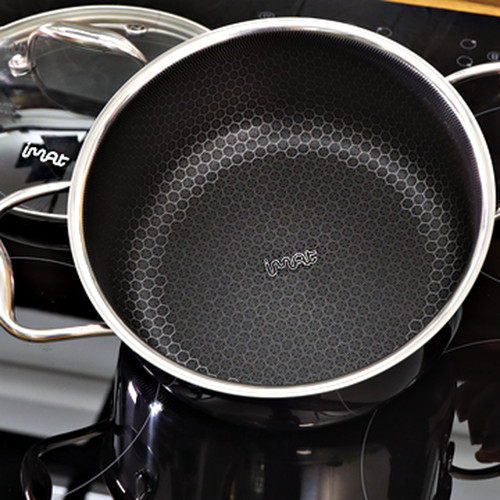 Vung nồi bằng thuỷ tinh chịu nhiệt, trong suốt nên dễ quan sát thực phẩm trong khi nấu. Logo iMat in sắc nét trên vung và đáy nồi.