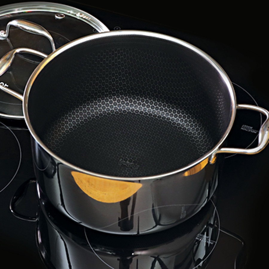 BLACKCUBE là khắc bề mặt inox để làm trồi lên những trụ nhỏ xếp hình tổ ong, trụ inox trồi cao che chắn và bảo vệ những tác động từ các dụng cụ nấu ăn lên lớp không dính. Lớp không dính của hãng Daikin, Nhật bản không PFOA tốt cho sức khoẻ.CẤU TRÚC INOX 3 LỚP TRIPLY - DẪN VÀ GIỮ NHIỆT TỐT