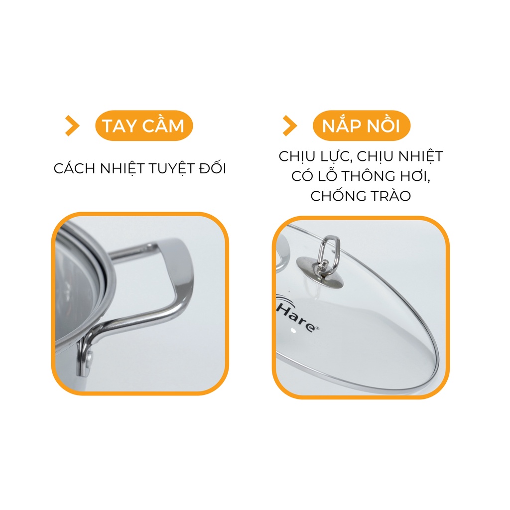 ✨Nồi lẩu inox đáy từ HR - HP2801 (28cm) - Thương hiệu Hare - lỗi 1 đổi 1