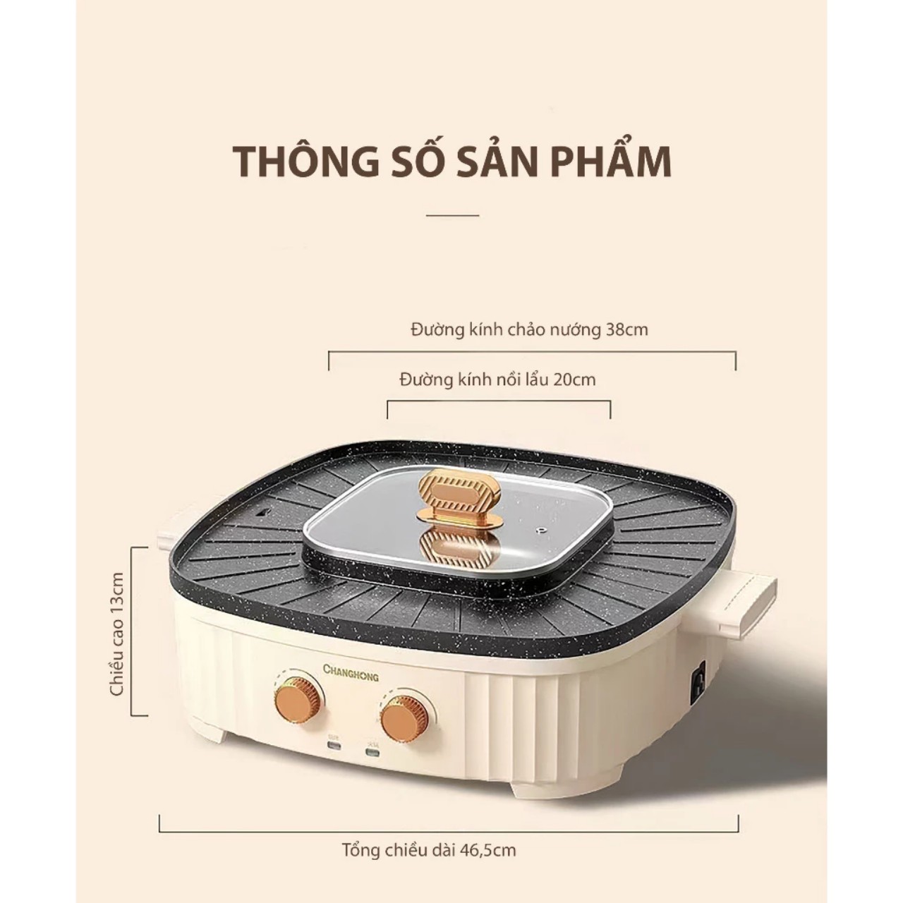 Điện thế: 220V/50Hz Công suất: 1000- 1100W nhiệt độ 50 - 240 độ Số ngăn : 2 ngăn ( Lẩu - Nướng) hoạt động độc lập nên khi không dùng nướng bạn hoàn toàn có