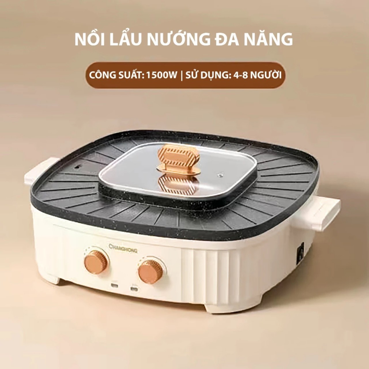 TIỆN ÍCH NHÂN ĐÔI – SÁNH ĐÔI LẨU NƯỚNG ⮚ Sản phẩm được tích hợp 2 chức năng nướng và nấu trên cùng 1 bếp. Chỉ cần 10 giây chuyển từ nướng sang nấu