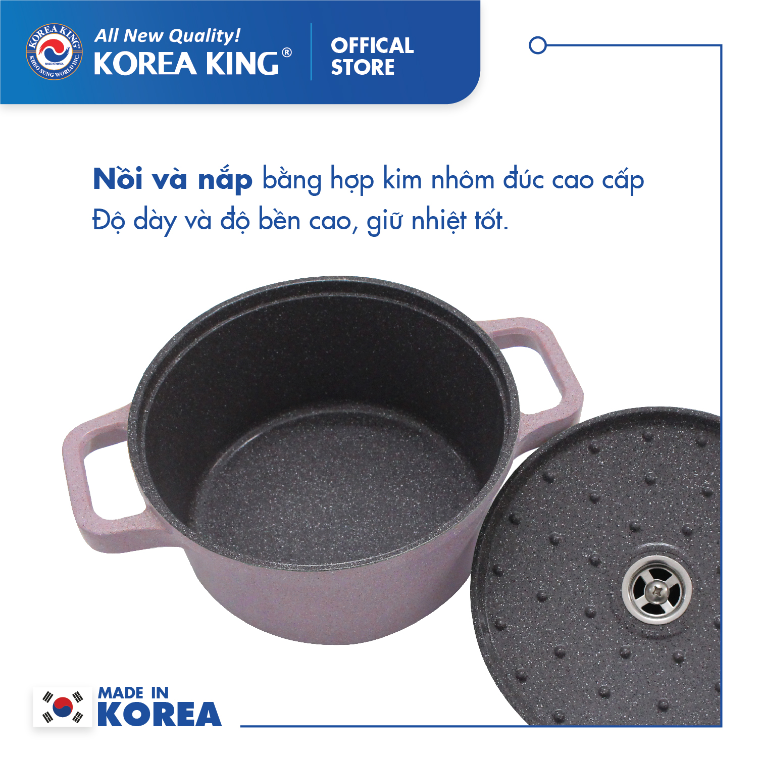 ✨Nồi nấu Levante đáy từ Korea King KP-28LI(Nồi, nắp bằng nhôm đúc, phủ men chống dính Ceramic, Ø28cm)-Màu hồng