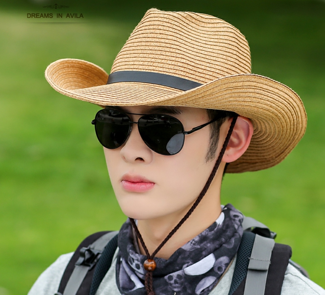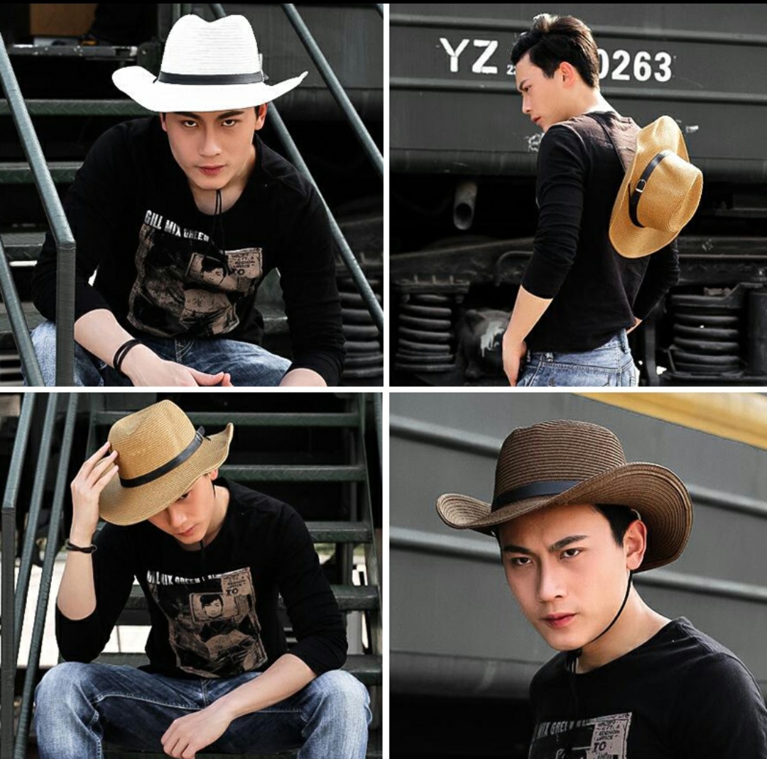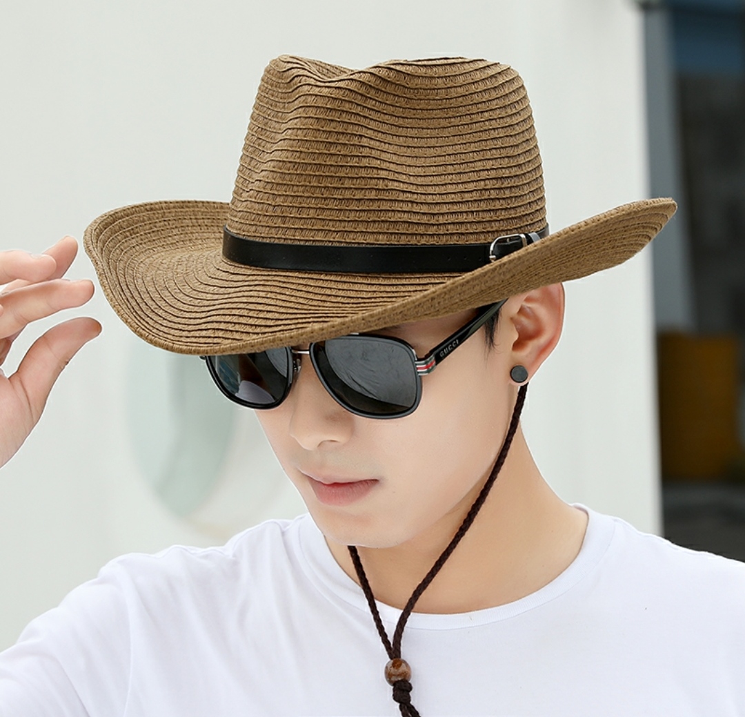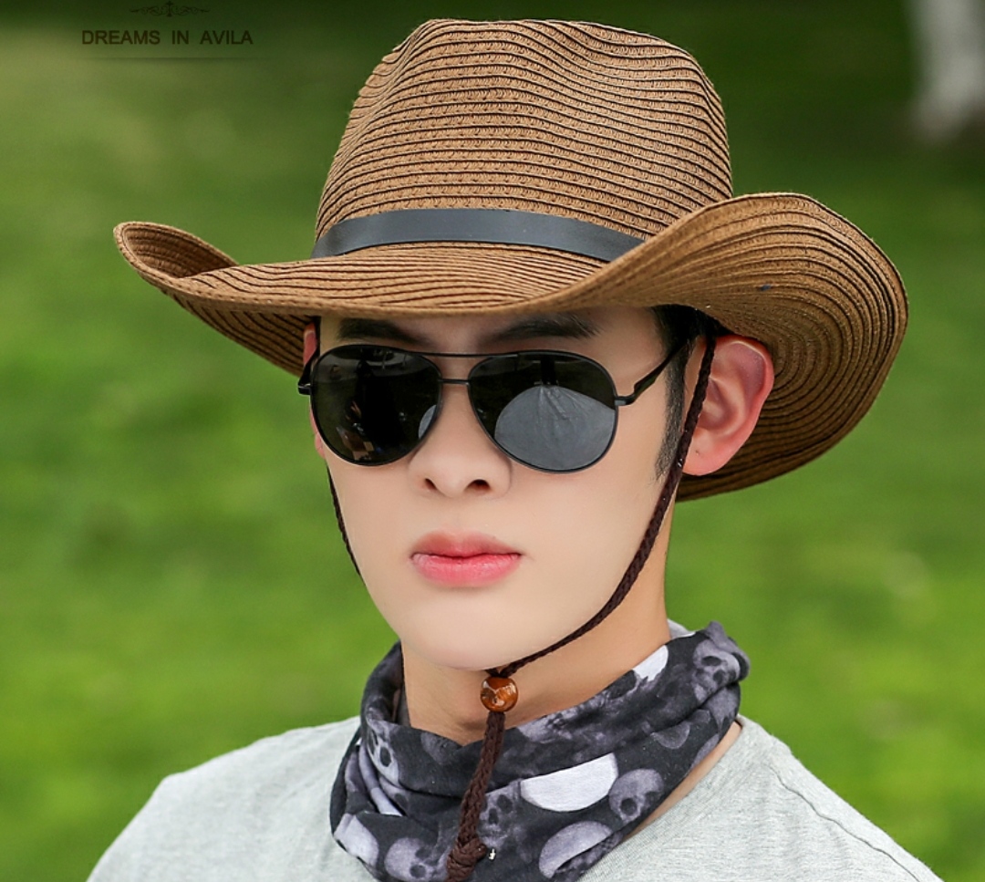 Nón cao bồi nam Mũ cao bồi nữ đi biển chống nắng thoáng mát gấp gọn thời trang Korea Chất liệu cói