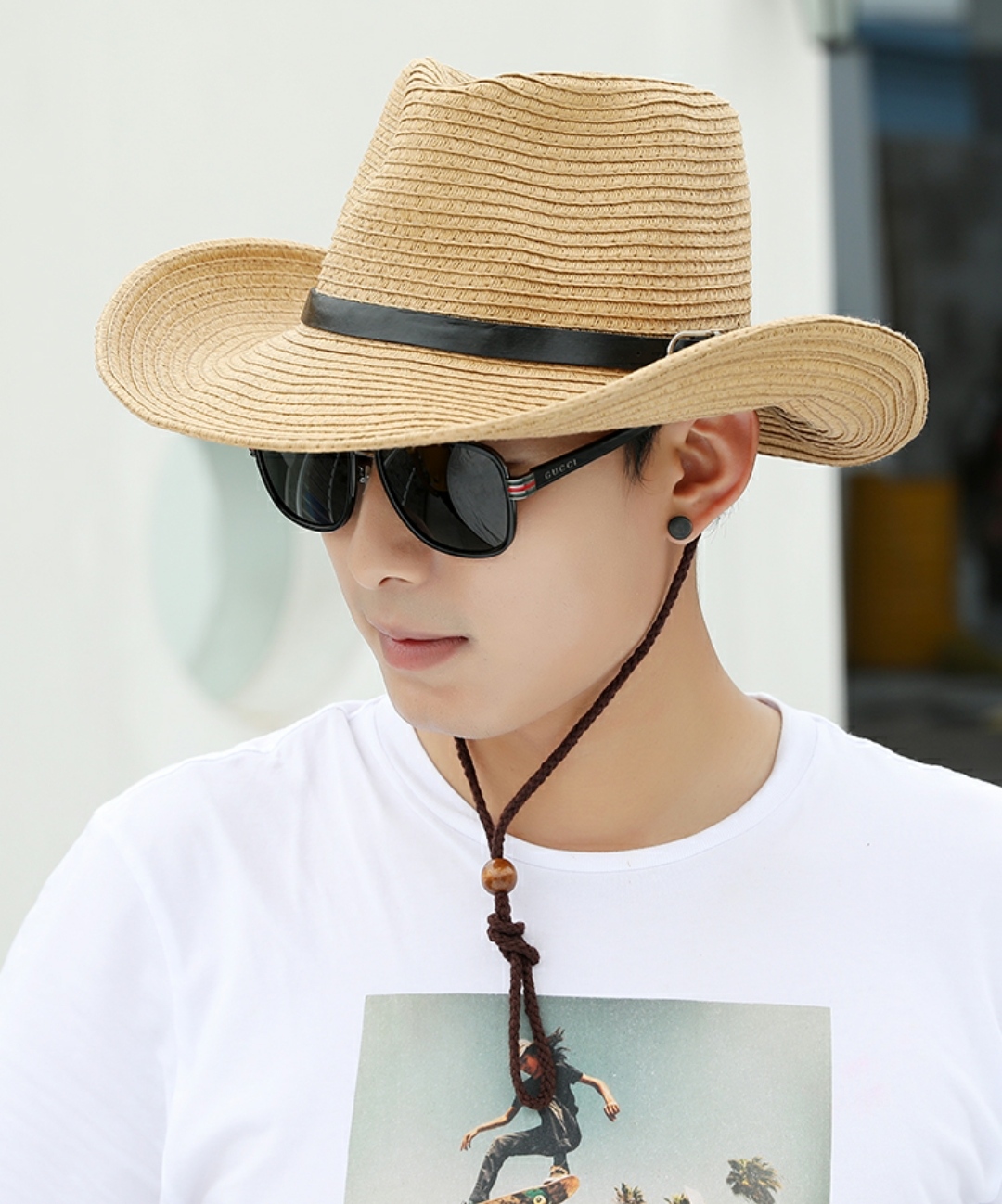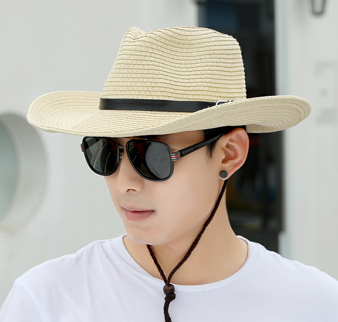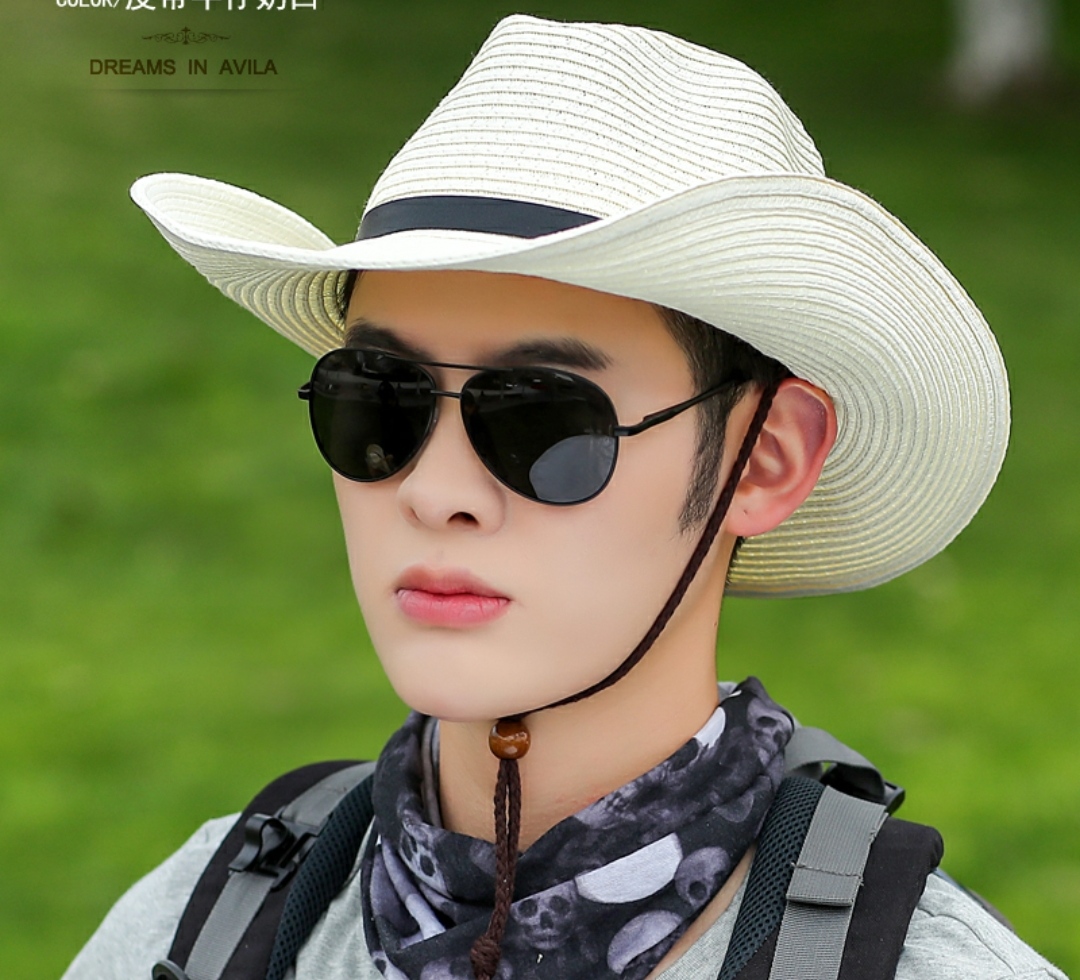 Nón cao bồi nam Mũ cao bồi nữ đi biển chống nắng thoáng mát gấp gọn thời trang Korea Chất liệu cói