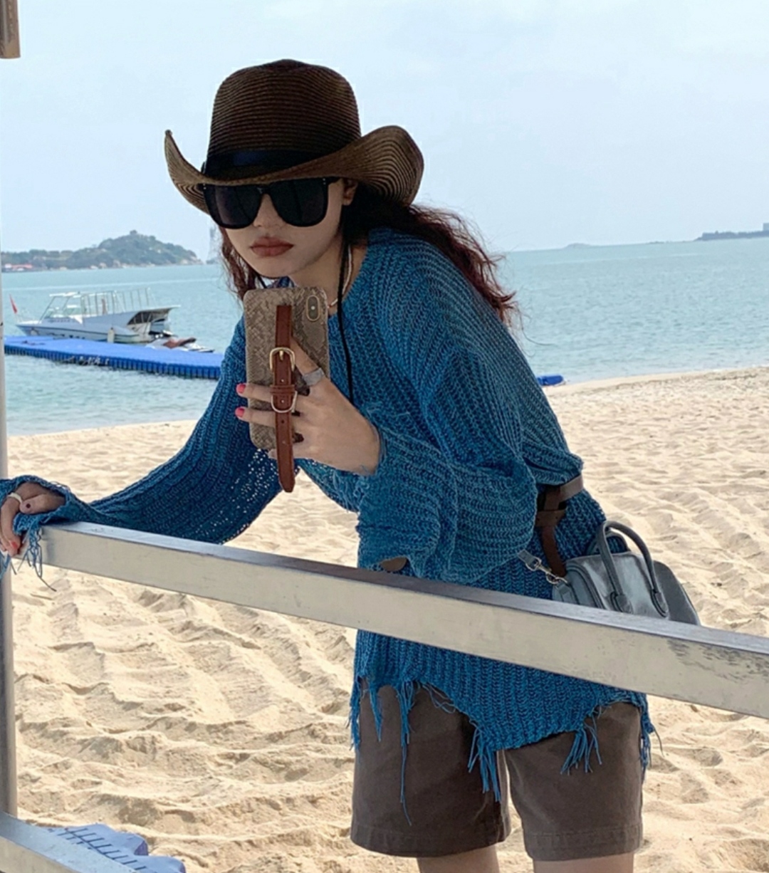 Nón cói đi biển nữ đầu bằng dây da LOULIHAT, mũ cói rộng vành chống nắng thời trang Hàn Quốc