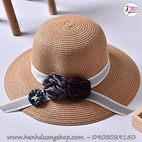 Mũ đi biển nón sơn, vành rộng 11cm chống nắng tốt, gắn nơ hoa dễ thương - Hạnh Dương Shop