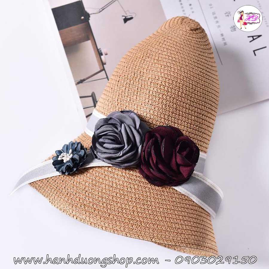 ✨Nón du lịch bãi biển chống nắng nơ 2 hoa HQC4104