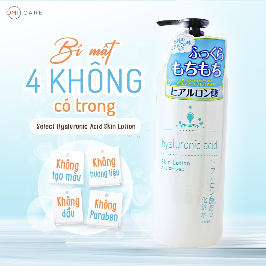 Nước dưỡng da chiết xuất Acid Hyaluronic S Select 500ml giúp cấp ẩm sâu cho da, giúp ngăn ngừa và cải thiện tình trạng da thô ráp, bong tróc, sần sùi do thiếu ẩm. Từ