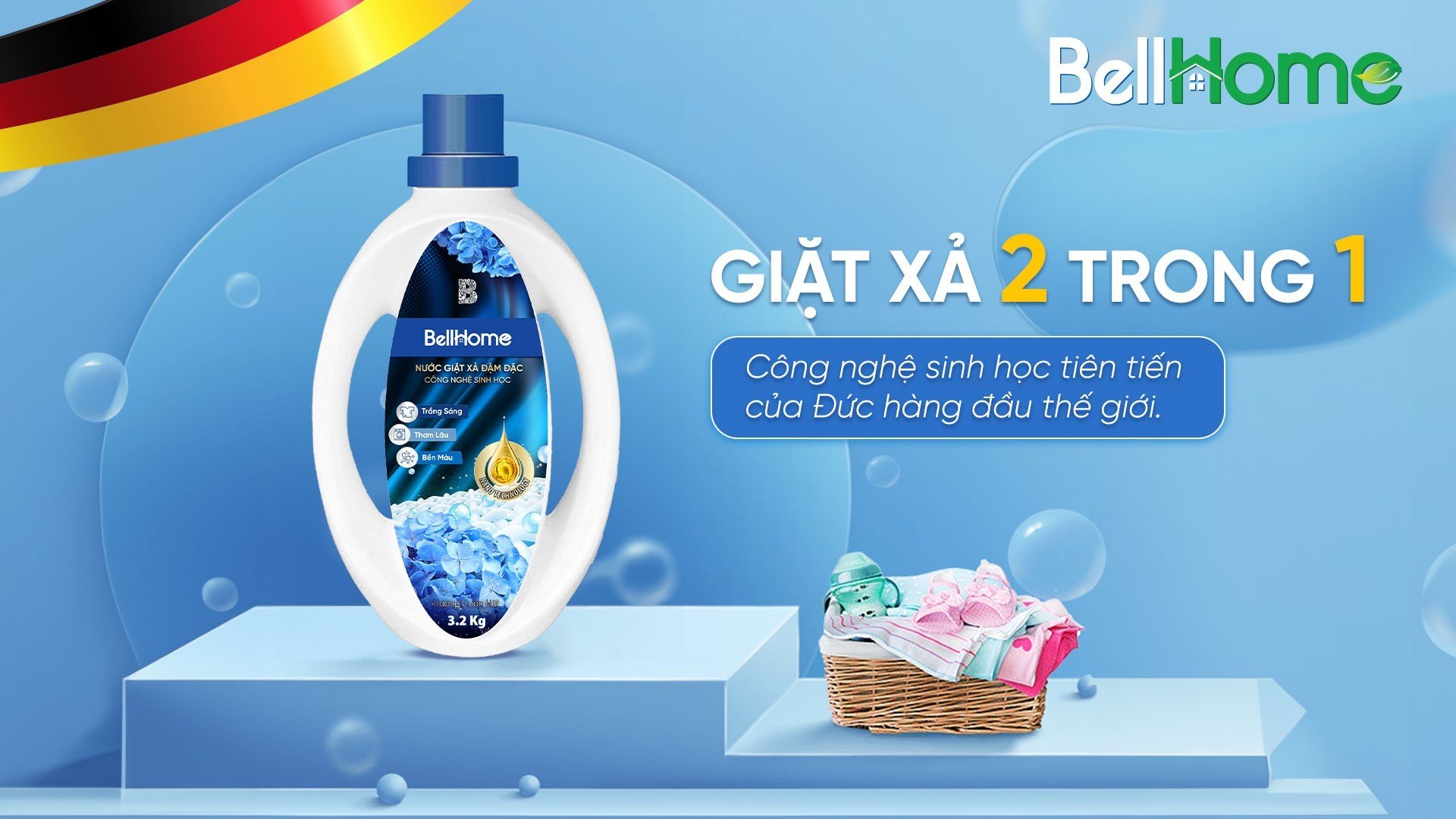 Mua tại TiktokNước Giặt Xả Công Nghệ Sinh Học Bell Home – Giải Pháp Sống Xanh Hiện Đại, An Toàn Cho Sức Khỏe Nước giặt xả Bell Home đang thu hút sự chú ý từ cộng đồng người tiêu dùng nhờ ứng dụng công nghệ enzyme sinh học tiên tiến, mang đến khả năng làm sạch tối ưu và hương thơm lưu giữ lâu dài. Đây là giải pháp lý tưởng cho những ai theo đuổi phong cách "Sống Xanh", bảo vệ sức khỏe gia đình và thân thiện với môi trường. Tìm Hiểu Về Nước Giặt Xả Công Nghệ Sinh Học Bell Home Nước giặt xả Bell Home là dung dịch giặt xả được sản xuất bằng công nghệ sinh học, sử dụng các enzyme có nguồn gốc tự nhiên để loại bỏ vết bẩn cứng đầu trên quần áo. Không giống như các loại nước giặt công nghiệp sử dụng hóa chất mạnh như NaOH hay Clo, sản phẩm này an toàn cho sức khỏe, không gây kích ứng da, đặc biệt phù hợp với gia đình có trẻ nhỏ. Sản phẩm được tạo nên từ 97% thành phần thực vật và không chứa phosphate hay các hương liệu nhân tạo, mang đến sự yên tâm cho người tiêu dùng về độ an toàn và tính thân thiện với môi trường. Công Nghệ Enzyme Hiện Đại Trong Nước Giặt Xả Bell Home Bell Home đã ứng dụng hai loại enzyme sinh học tiên tiến trong sản phẩm: