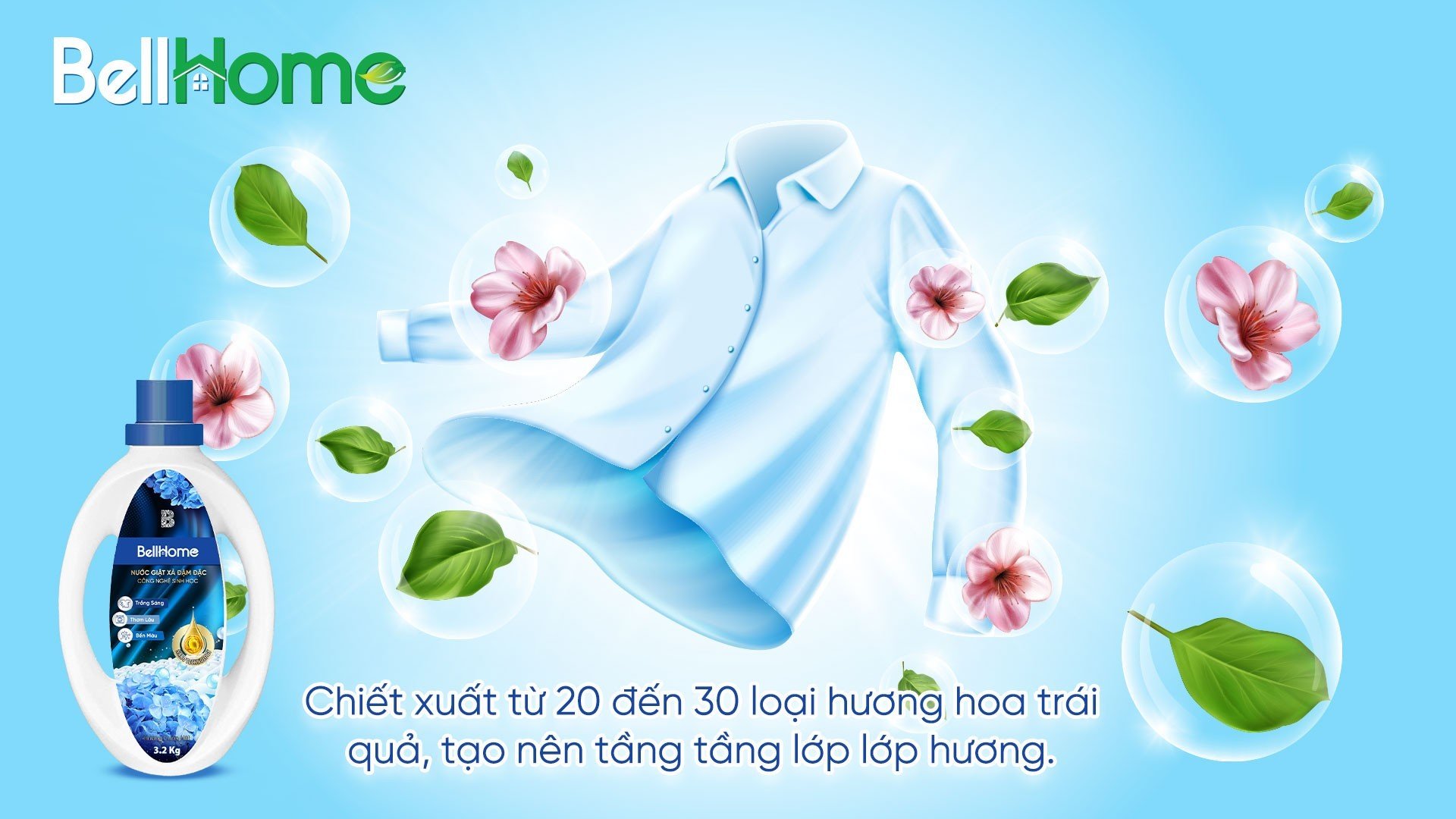 Lưu Hương Tinh Tế, Tự Nhiên Bell Home sử dụng công nghệ lưu hương đa tầng tiên tiến, kế thừa từ Bell Flavors & Fragrances, một trong những công ty hàng đầu thế giới về hương liệu. Mỗi lớp hương hoa trong sản phẩm là sự kết hợp độc đáo từ 20-30 loại hoa và trái cây tự nhiên, mang đến mùi hương quyến rũ, dễ chịu. Nhờ vào khả năng lưu hương lâu dài, quần áo sẽ luôn thơm mát suốt nhiều giờ sau khi giặt, không bị mùi khó chịu dù ngâm lâu trong nước.