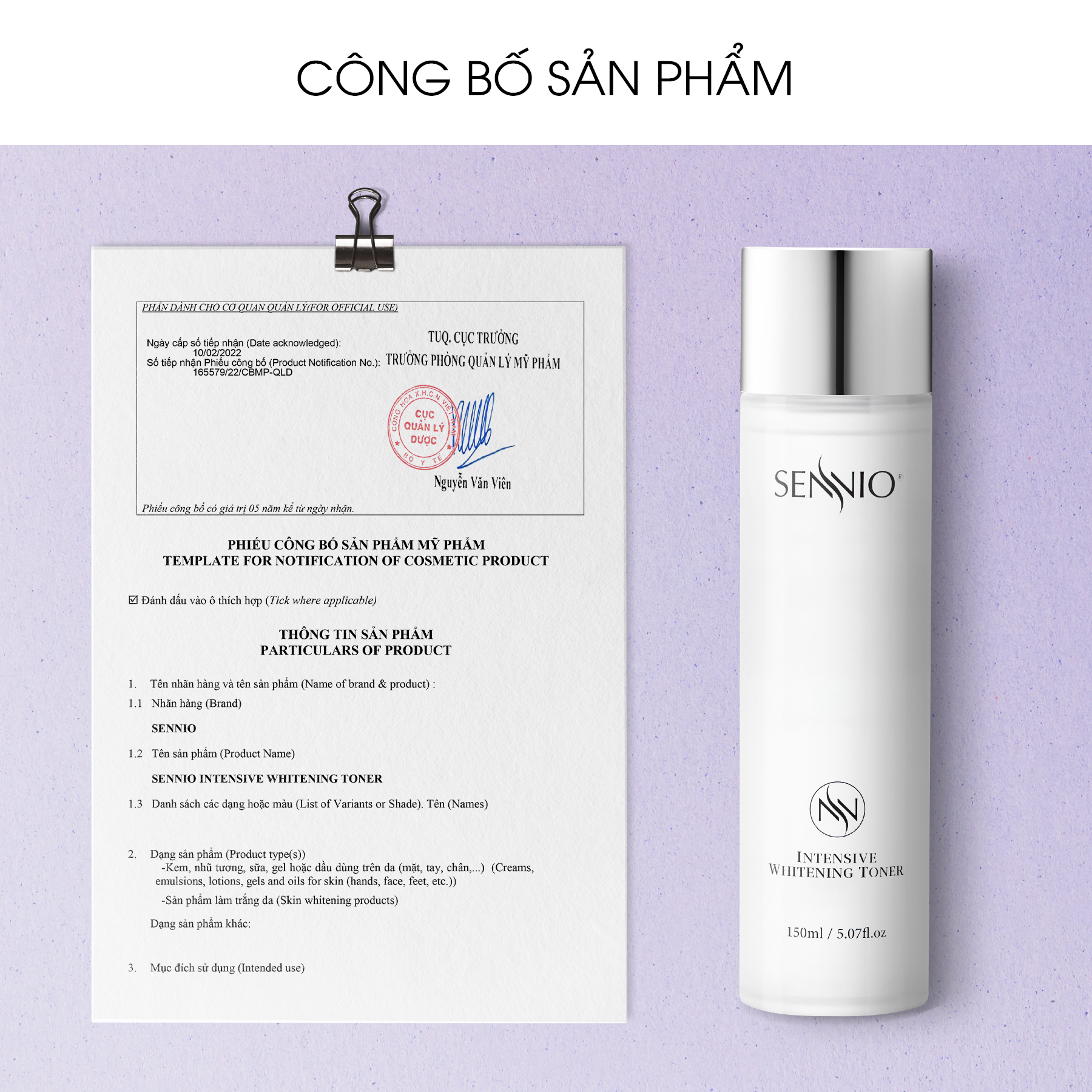 THÔNG TIN SẢN PHẨM Nước hoa hồng trắng da, ức chế sắc tố Sennio SNO 831 - Thương hiệu: Sennio - Xuất xứ: Hàn Quốc - Sản xuất tại: 6, Myeonghaksandanseo-ro, Yeondong-myeon, Sejong Special Self-Governing