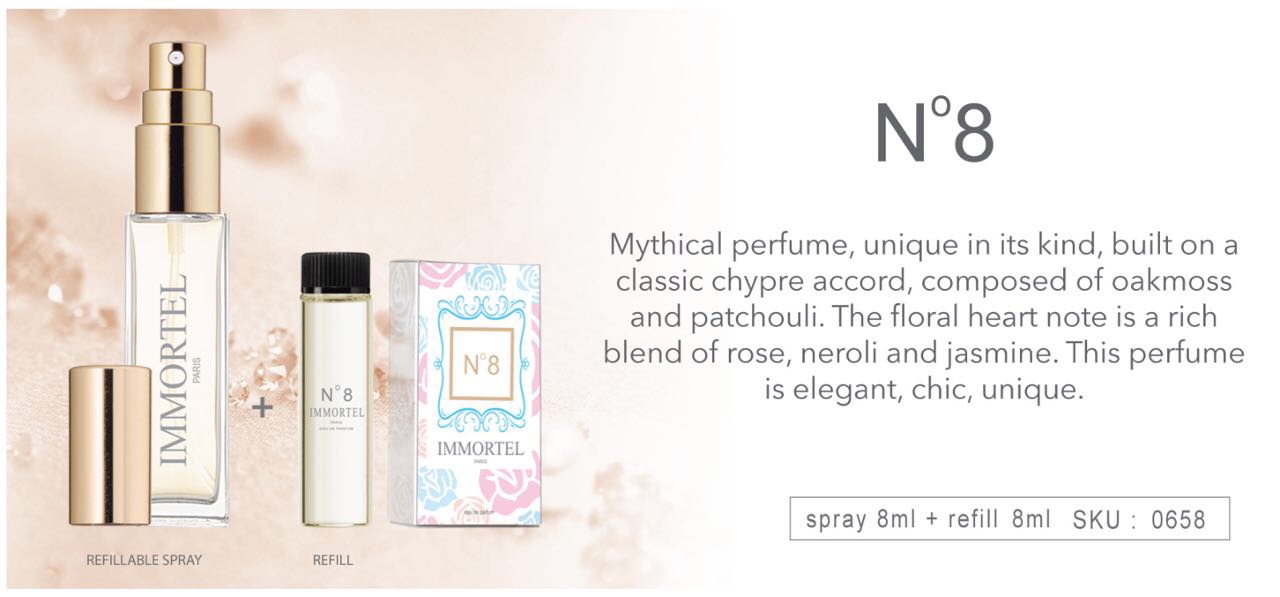 ✨Nước Hoa IMMORTEL No8 (GỒM CHAI XỊT 8ML + CHAI NẠP 12)