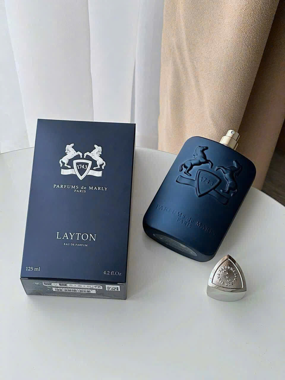 Parfums de Marly Layton được đánh giá rất cao trong bộ sưu tập, nó là vẻ đẹp của nước hoa niche lúc bấy giờ. Layton có vẻ ngoài rất cổ điển, và mang ngầm nét hoàng gia, hào nhoáng xa xỉ.