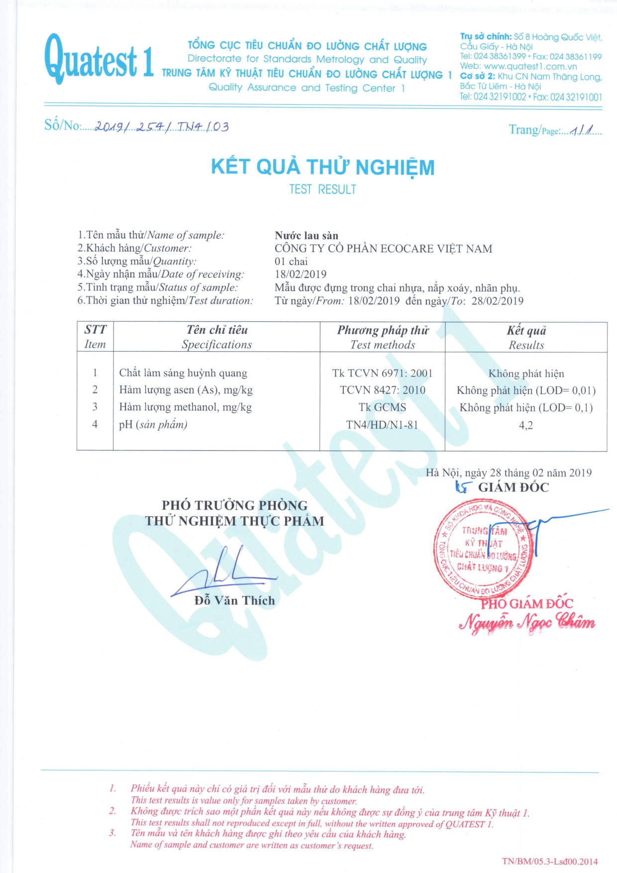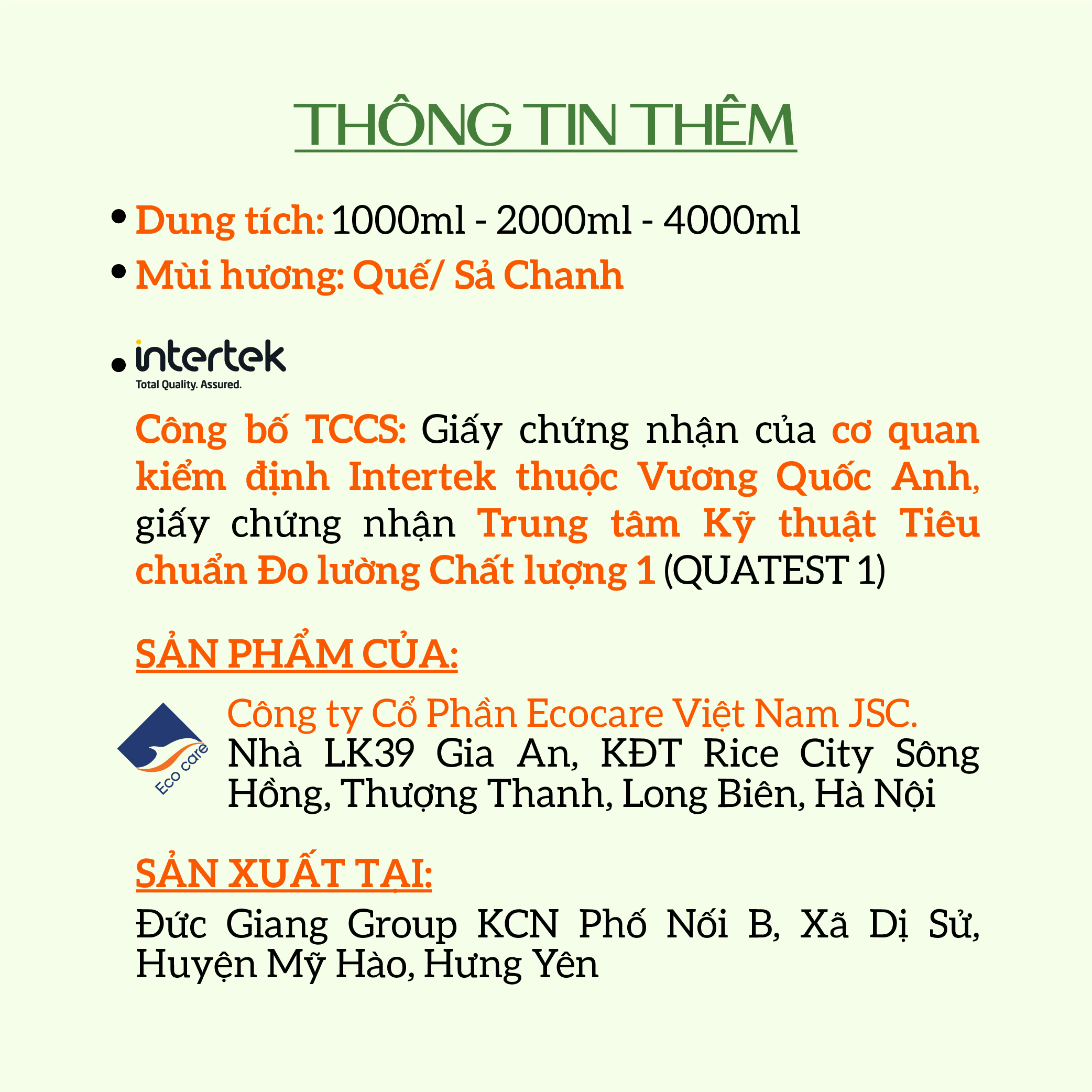 Sản phẩm có giấy chứng nhận của cơ quan kiểm định Intertek thuộc Vương Quốc Anh, giấy chứng nhận Trung tâm Kỹ thuật Tiêu chuẩn Đo lường Chất lượng 1 (QUATEST 1)