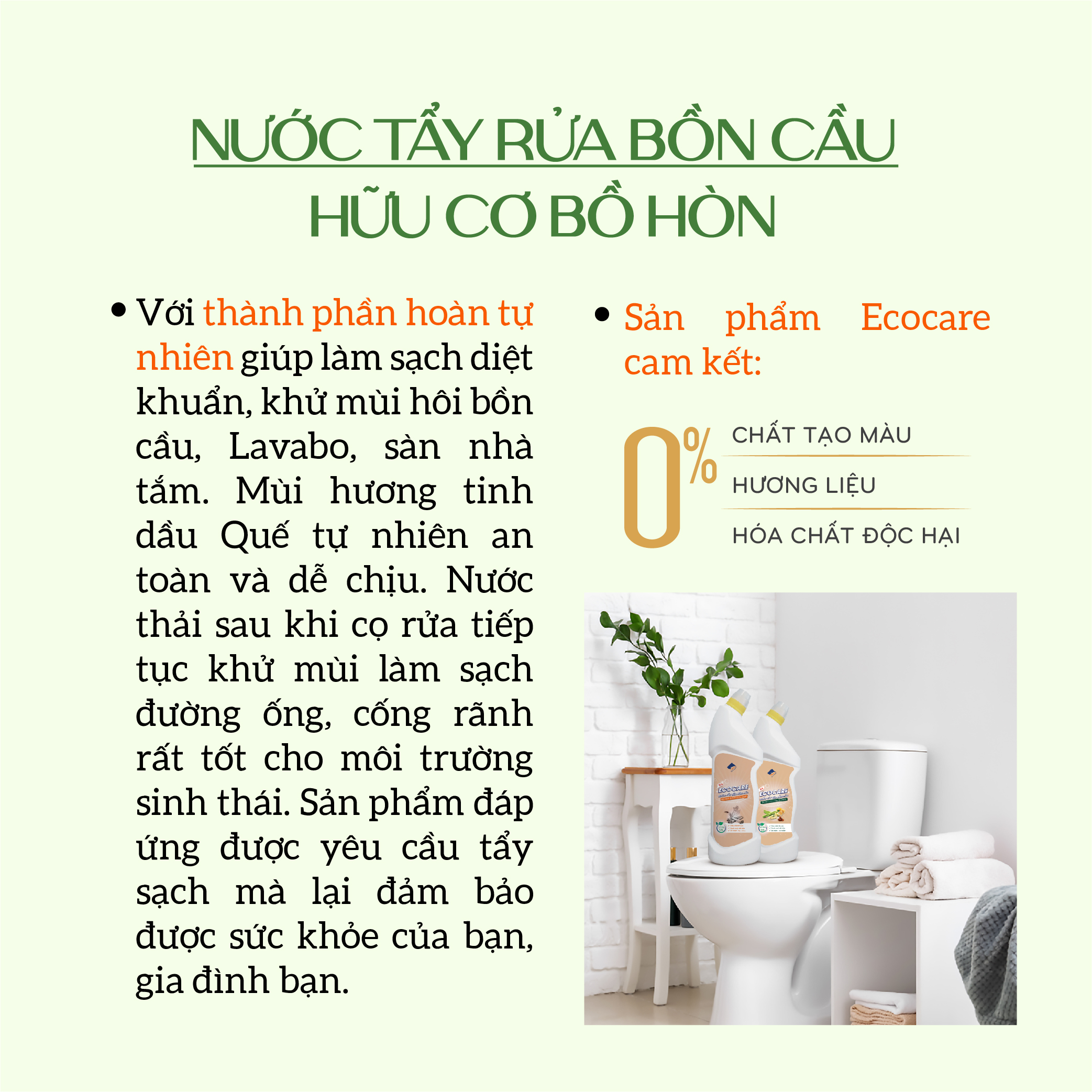 • Trước tiên, Ecocare xin cảm ơn Quý Khách hàng đã tin tưởng lựa chọn sản phẩm Nước tẩy rửa bồn cầu Hữu cơ Ecocare 1000ml