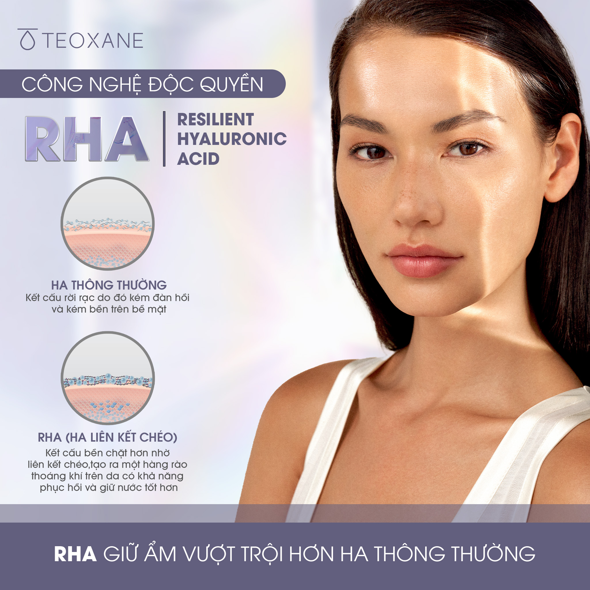 - RHA resilient hyaluronic acid (Giữ ẩm lâu và củng cố hàng rào bảo vệ da)