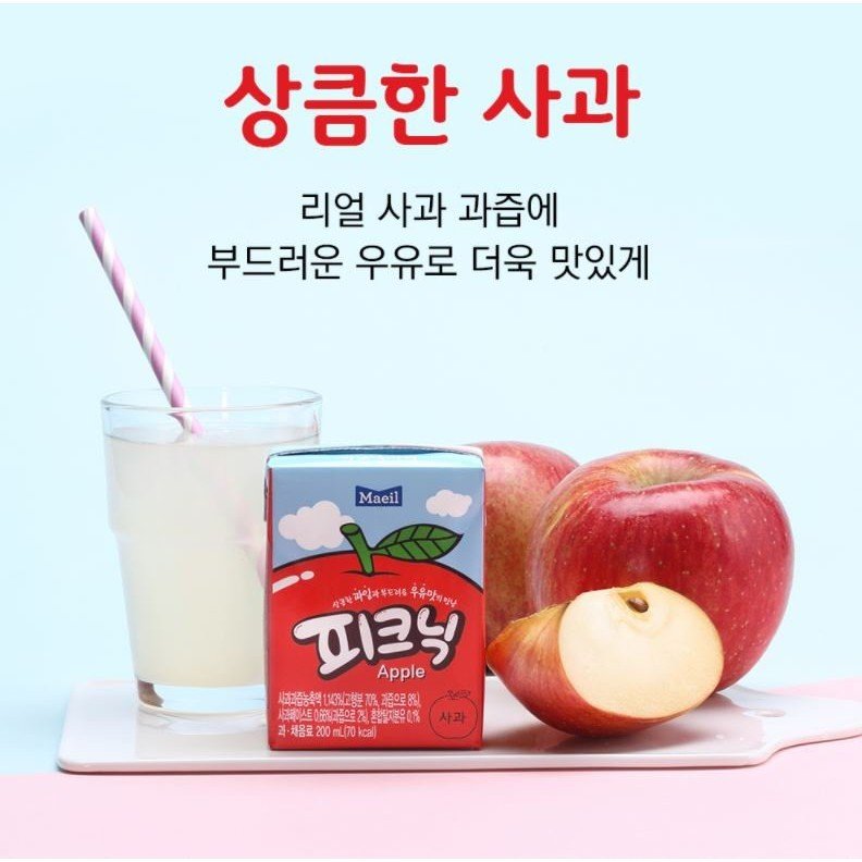 Nước Picnic vị táo của Maeil là món nước ép trái cây vị táo kết hợp với sữa. Là món thức uống thơm ngon, bổ dưỡng. Trong nước ép Picnic có chứa nhiều chất xơ