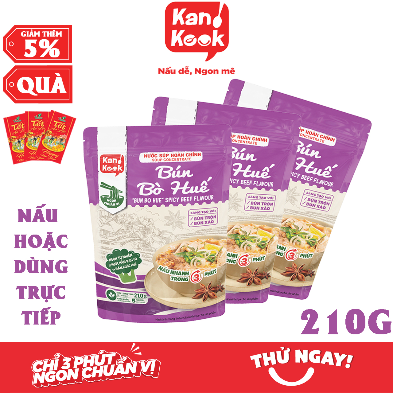 ✨Nước Xốt (Sốt) Cô Đặc Vị Bún Bò Huế KanKook Gói 210g Nấu/Trộn Ăn Liền Vị Hoàn Chỉnh Chuẩn Vị Bún Bò Huế