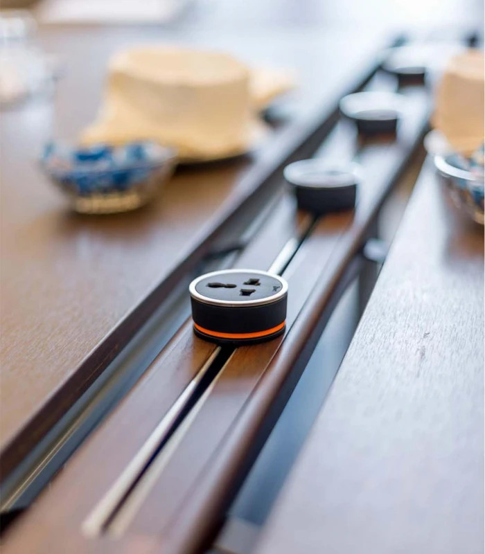 - Ổ cắm và các phụ kiện có thể lắp vào và tháo ra một cách tự do ở bất cứ đâu dọc theo thanh ray Line8