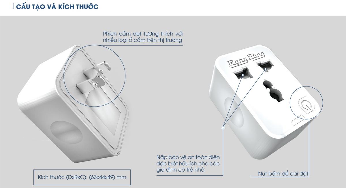 Thiết kế nhỏ gọn, tinh tế khi cắm vào ổ cắm âm tường sẽ tiết kiệm không gian