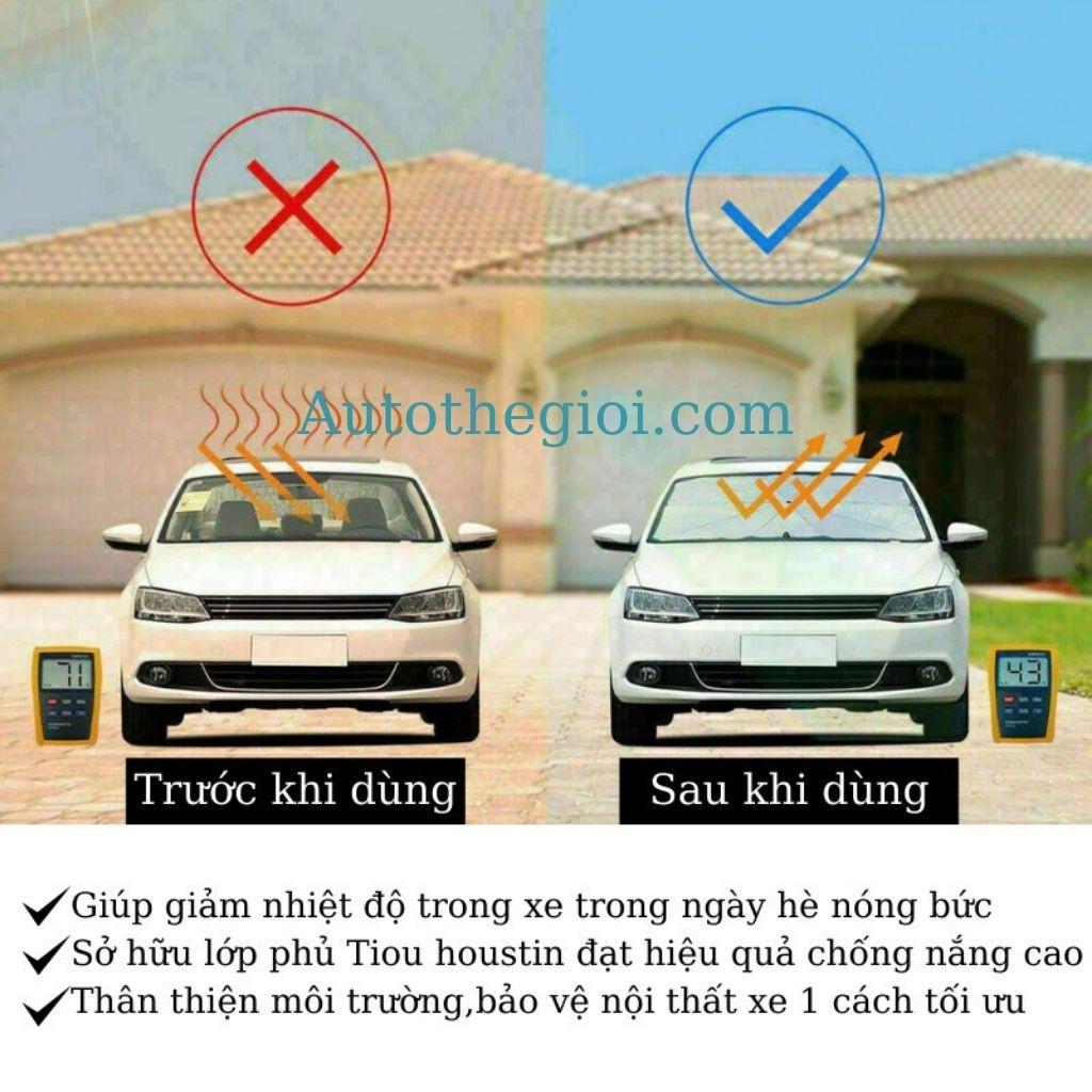 Đặc điểm nối bật của bạt chống nóng kính xe này là gì ?? Thiết kế đơn giản, nhỏ gọn rất thuận tiện với cccm không thích dùng bạt phủ Chất liệu 3D không thấm