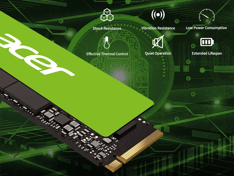 Thiết kế tích hợp của Acer Storage tăng cường độ ổn định của thành phần, giảm đáng kể nguy cơ trục trặc. Cách làm này giúp tăng cường khả năng chống va đập và rung động của ổ cứng, đồng thời mang lại lợi ích. Việc lưu trữ dữ liệu của bạn giờ đây an toàn và đáng tin cậy hơn bao giờ hết.