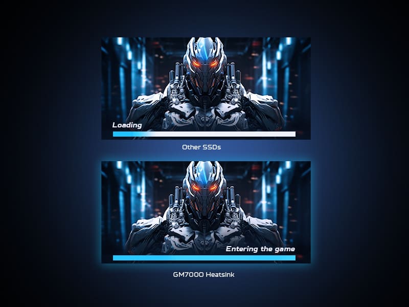 GM7000 Heatsink cung cấp dung lượng tùy chọn lên đến 4TB, hỗ trợ các hoạt động lưu trữ chuyên sâu — từ tải xuống game AAA đến lưu các tệp mô hình dựng hình lớn.