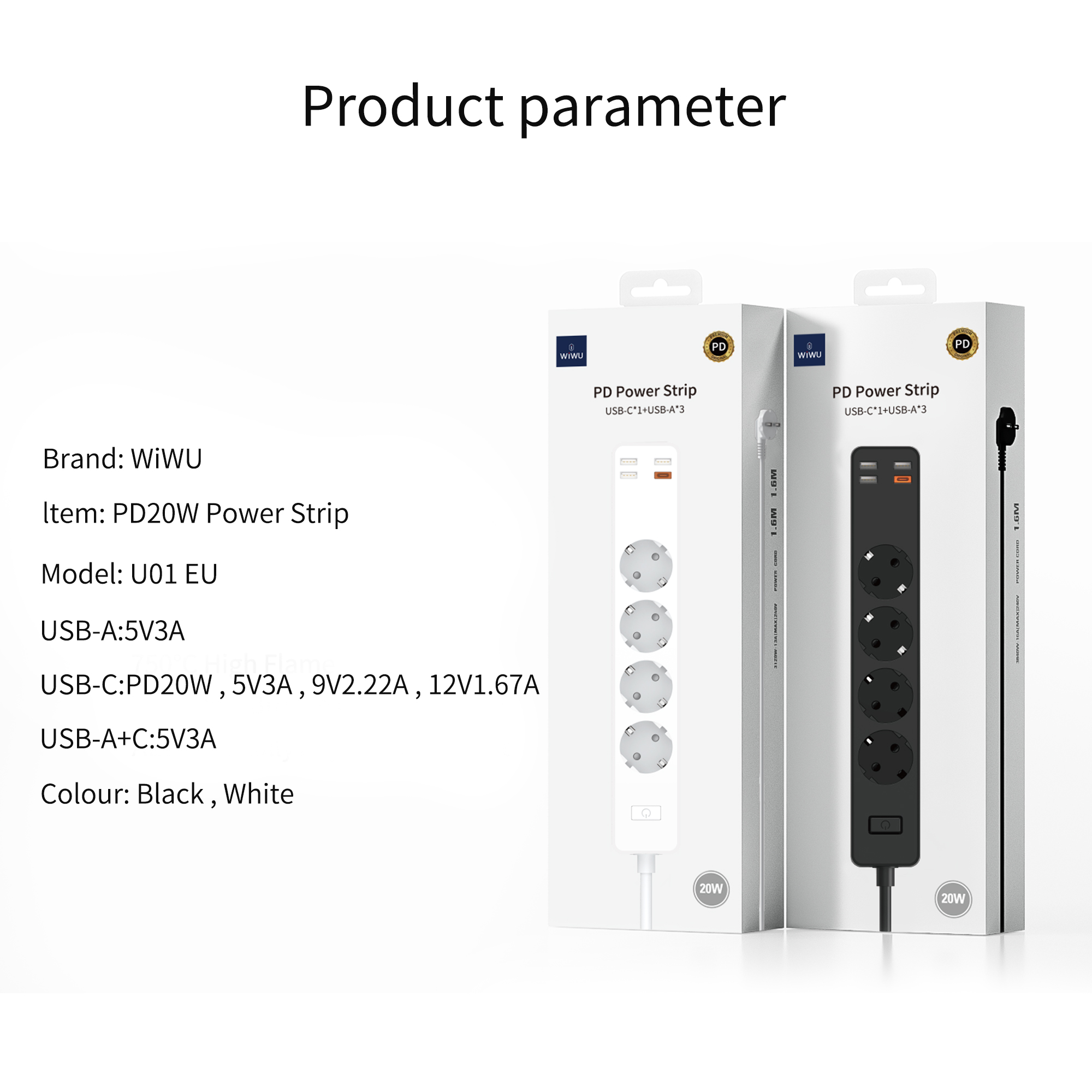 WiWU U01 Power Strip Socket With 4 AC 3 USB 20W PD