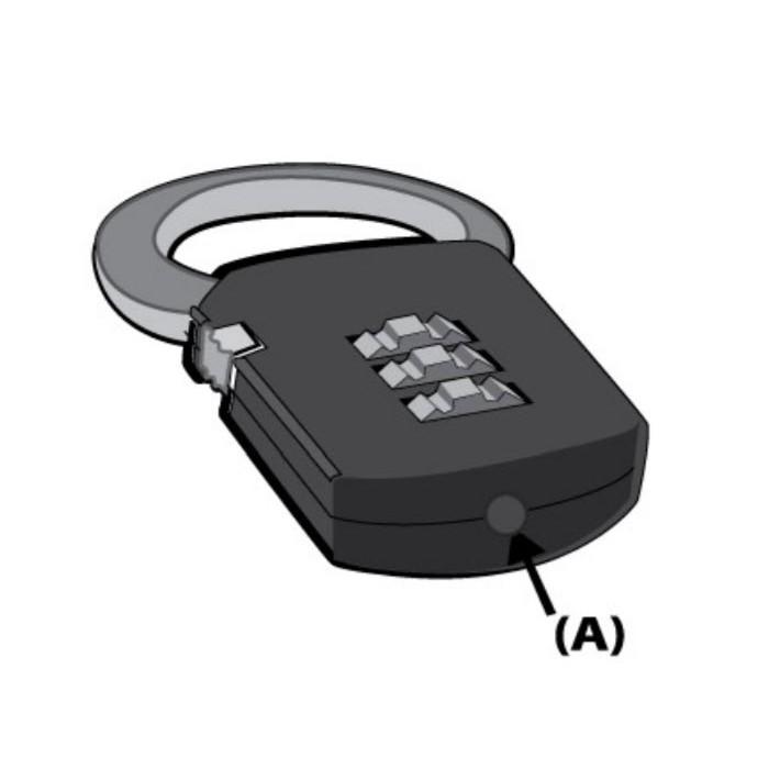 B2: Dùng vật nhọn như đầu cây bút NHẤN SÂU VÀ GIỮ vào lỗ dưới đáy khóa - nút (A) như hình, sau đó xoay mật mã bạn chọn.