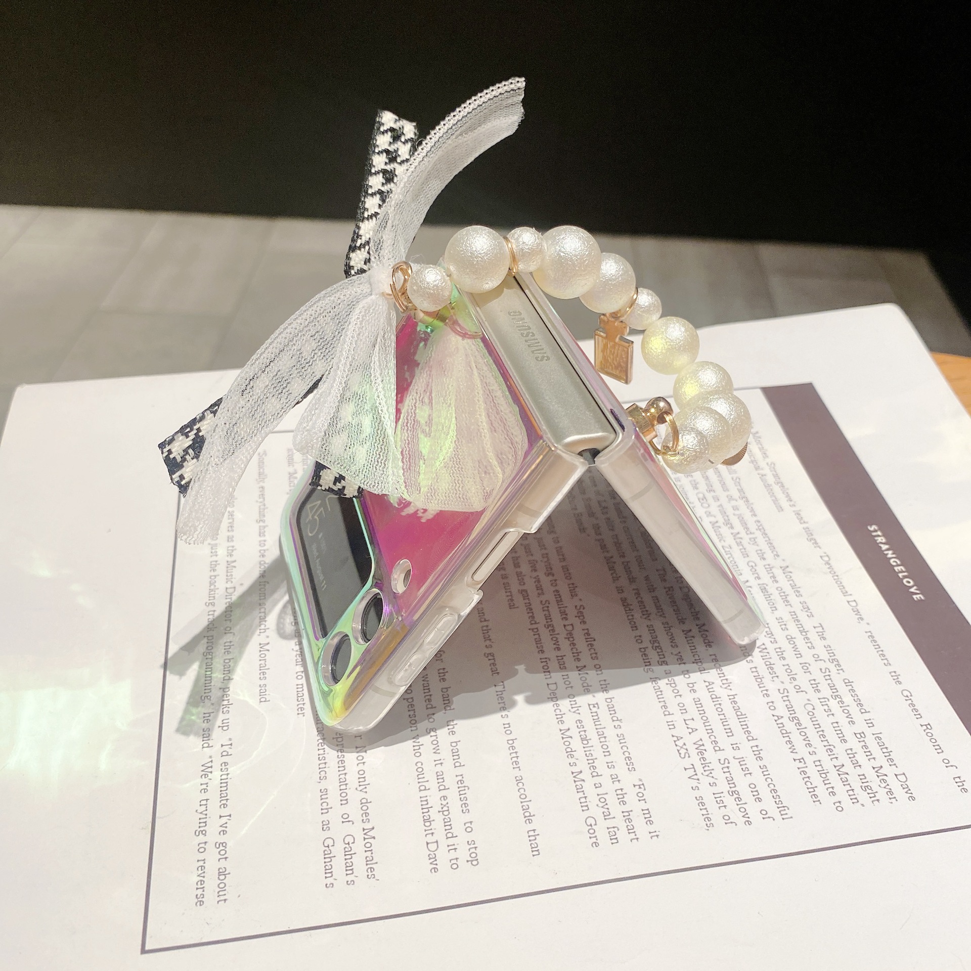 Ốp lưng chống sốc có dây đeo ngọc trai cho Samsung Galaxy Z Flip 4 hiệu HOTCASE Pearl Strap Case (chất liệu cao cấp sang trọng, thiết kế thời trang nữ tính)