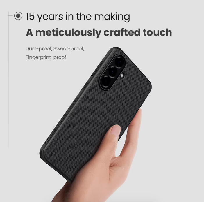 Ốp lưng SamSung Galaxy A56 chính hãng Nillkin dạng sần chống sốc. Chất liệu PC cứng cáp ở bề mặt ốp lưng có khả năng đàn hồi tốt, không bị giòn và khả năng chống