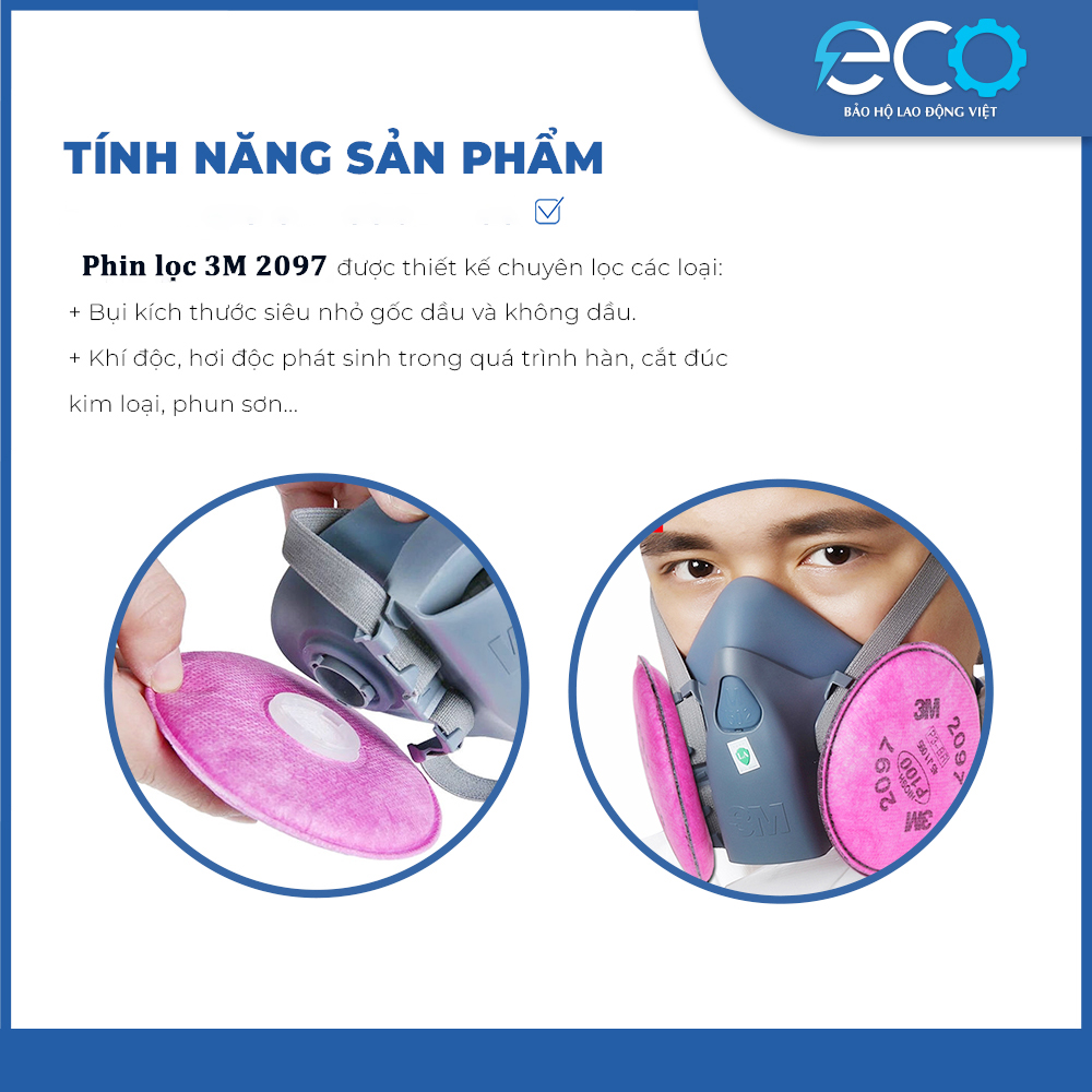 Bộ mặt nạ chống hóa chất 3M 6100/6200 + Phin lọc 3M 6003 - mặt nạ bảo vệ hô hấp Sản phẩm chính hãng 100% được phân phối bởi BHLD ECO ️ Bộ mặt nạ
