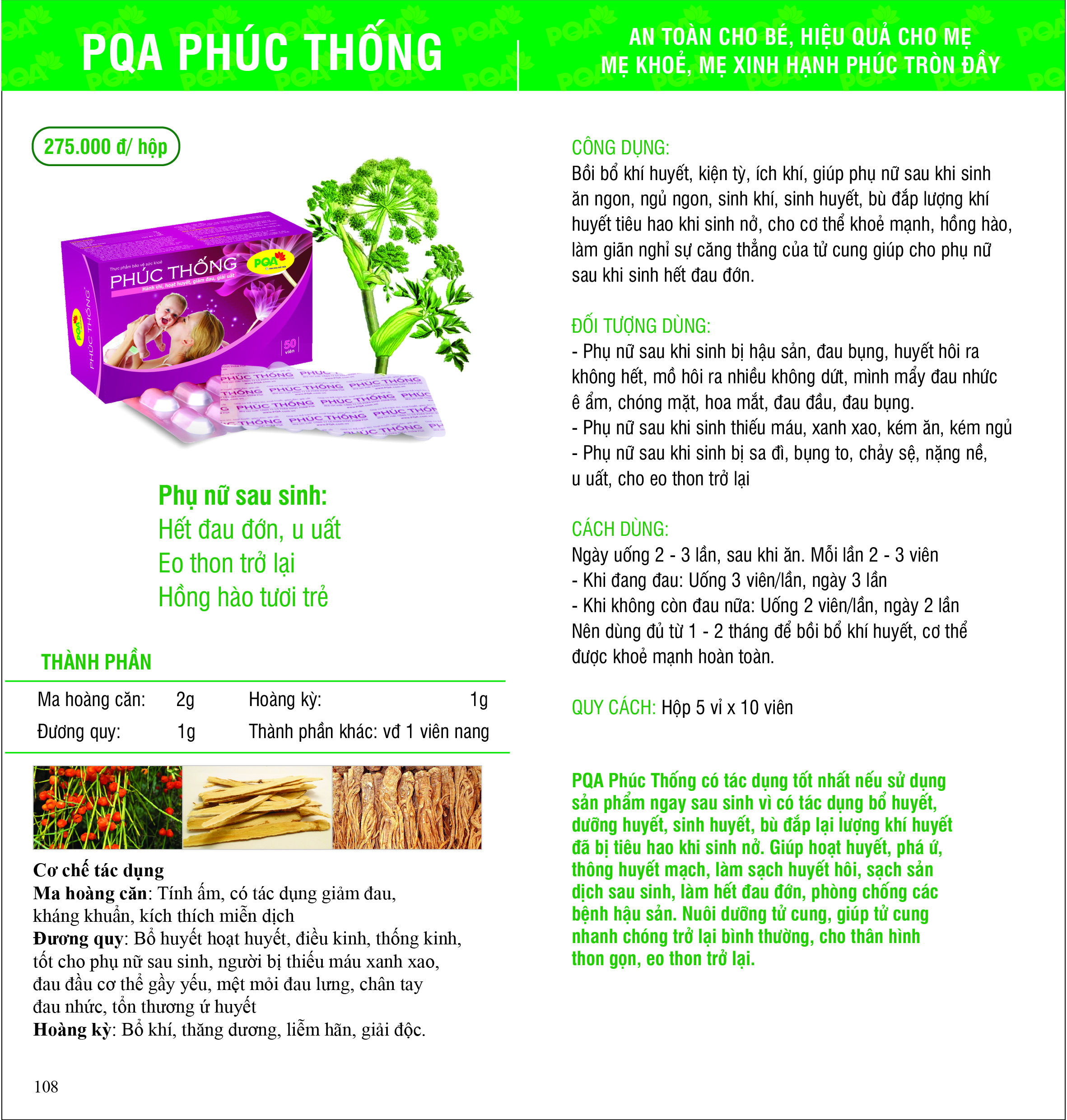 ✨Phúc Thống PQA Giúp Bổ Huyết, Hỗ Trợ Điều Hòa Kinh Nguyệt, Các Triệu Chứng Đau Bụng Kinh Hộp 50 Viên