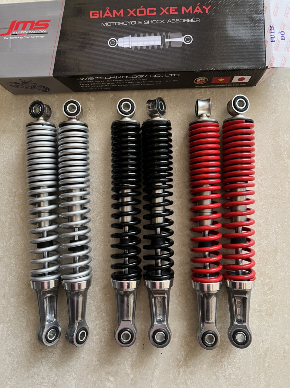 CHIỀU DÀI PHUỘC NHÚN: 330 mm Xuất xứ: Công ty TNHH công nghệ JMS Hàng mới 100% Dây chuyển sản xuất công nghệ Việt - Nhật Các tính năng nổi trội của Phuộc( giảm xóc)