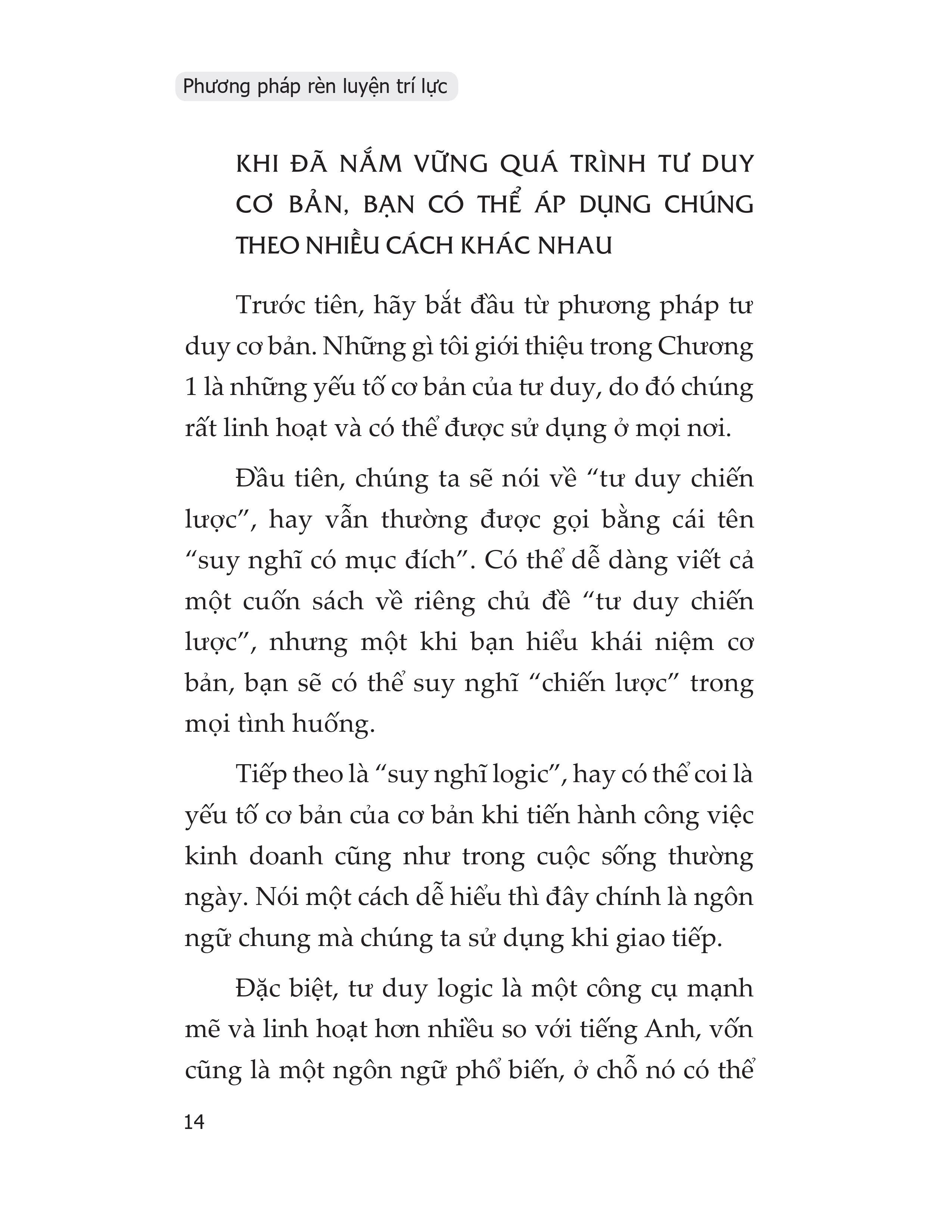 Mục đích của cuốn sách này là cung cấp một điểm khởi đầu cho tư duy, để bạn trước hết có thể tiếp thu những kiến thức cơ bản, sau đó có động lực để tiến tới rèn luyện “tư duy tích cực”. Hãy đọc và rèn luyện theo những phương pháp được cung cấp trong sách, rồi bạn sẽ cảm nhận được sự phát triển trong năng lực tư duy của bản thân và có thể thực sự sống một cuộc đời trọn vẹn.