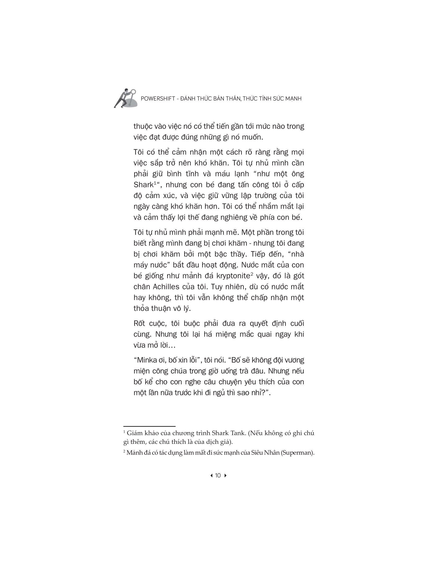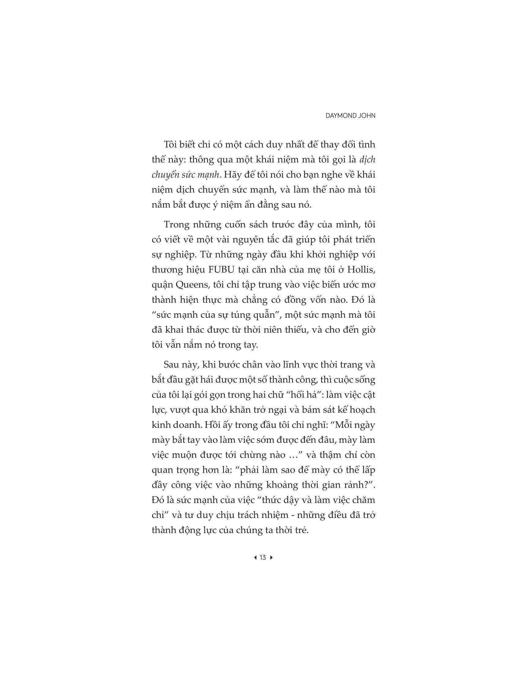 - Các mối quan hệ tạo nên sự kết nối lâu dài: Hãy nuôi dưỡng những kết nối mà bạn tạo ra trong suốt chặng đường. Thông qua những câu chuyện chưa từng được kể trong cuộc đời và sự nghiệp của m.ình, Daymond chia sẻ những bài học đưa ông đến vị trí như ngày hôm nay: từ cách ông làm lại hình ảnh trước công chúng khi chuyển từ ông trùm quần áo sang nhân vật truyền hình, đến cách ông nắm vững các chiến lược đàm phán. Tất cả những bí quyết quyết định các giao dịch thắng hay thua trong thế giới của các Shark, cũng như những bí mật của ông ấy trong việc xây dựng mối quan hệ lâu dài và có lợi với những người sáng lập và thương hiệu sẽ được tiết lộ trong sách. Xuyên suốt cuốn sách, một số nhân vật thành công nhất thế giới tiết lộ cách họ thay đổi quyền lực của m.ình theo những cách ấn tượng, như ngôi sao Kris Jenner, tỷ phú Mark Cuban, rapper Pitbull. Cho dù bạn là một nhà đổi mới đang nỗ lực biến ý tưởng lớn của m.ình thành hiện thực, một chuyên gia đang mong muốn được thăng chức hay một phụ huynh bận rộn đang cố gắng tìm thêm thời gian để tập trung vào những gì thực sự quan trọng với m.ình, Daymond sẽ chỉ cho bạn cách thay đổi sức mạnh và năng lượng hướng tới sự thay đổi tích cực.
