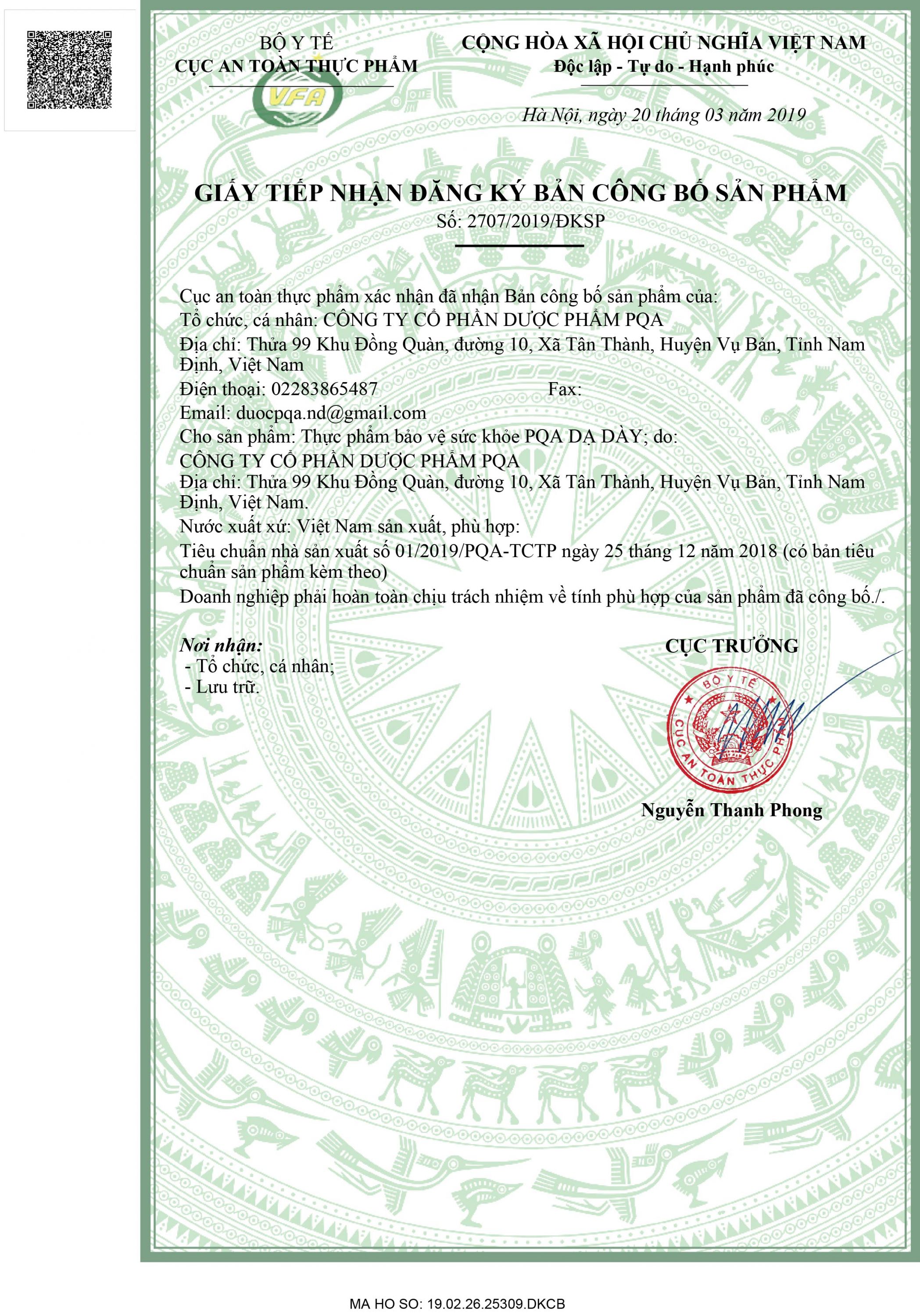 THÔNG TIN PQA DẠ DÀY DẠNG ỐNG